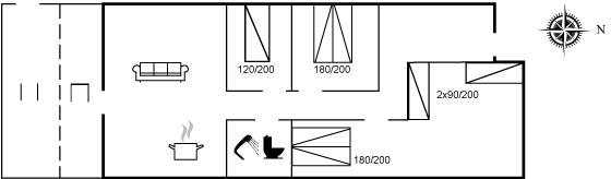 Die Schlafplätze verteilen sich auf 3 Schlafräume. 4 Schlafplätze in Doppelbetten. 3 Schlafplätze in Einzelbetten.