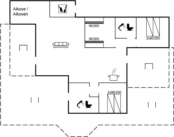 Die Schlafplätze verteilen sich auf 3 Schlafräume. 4 Schlafplätze in Doppelbetten. 4 Schlafplätze in Etagenbetten.