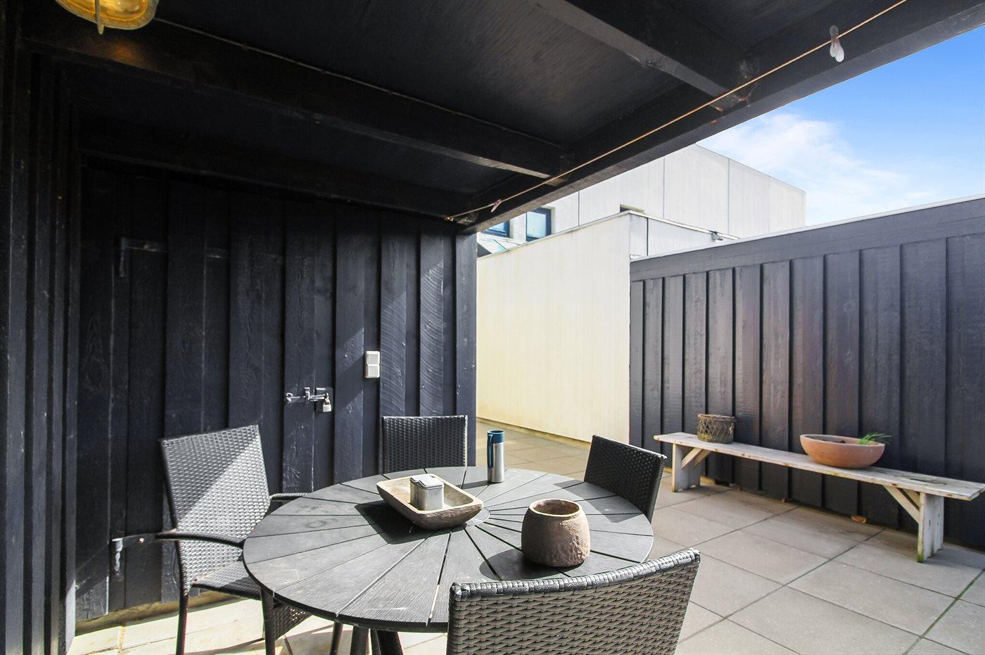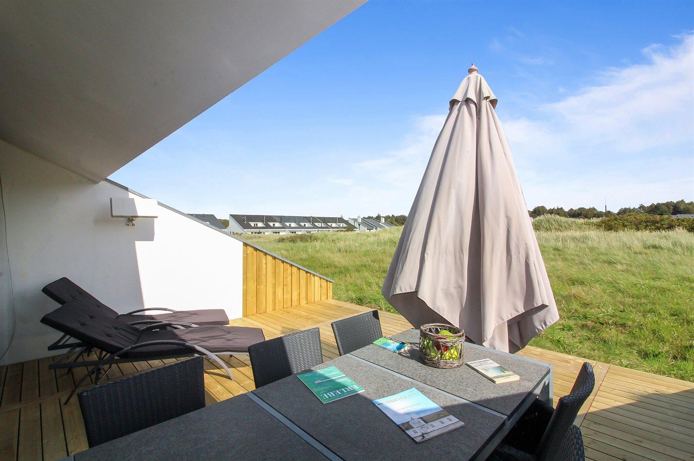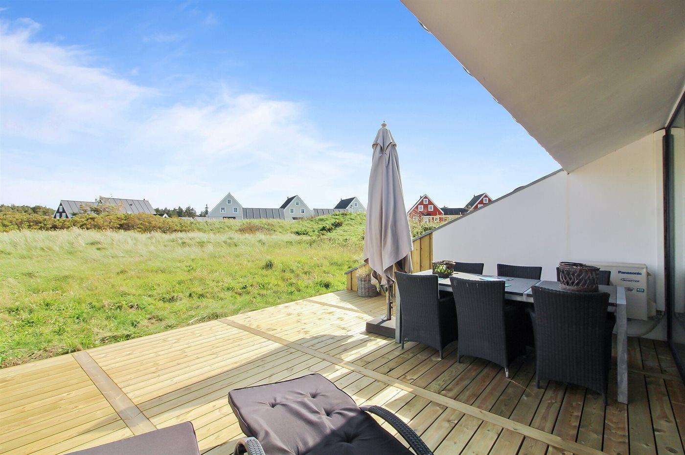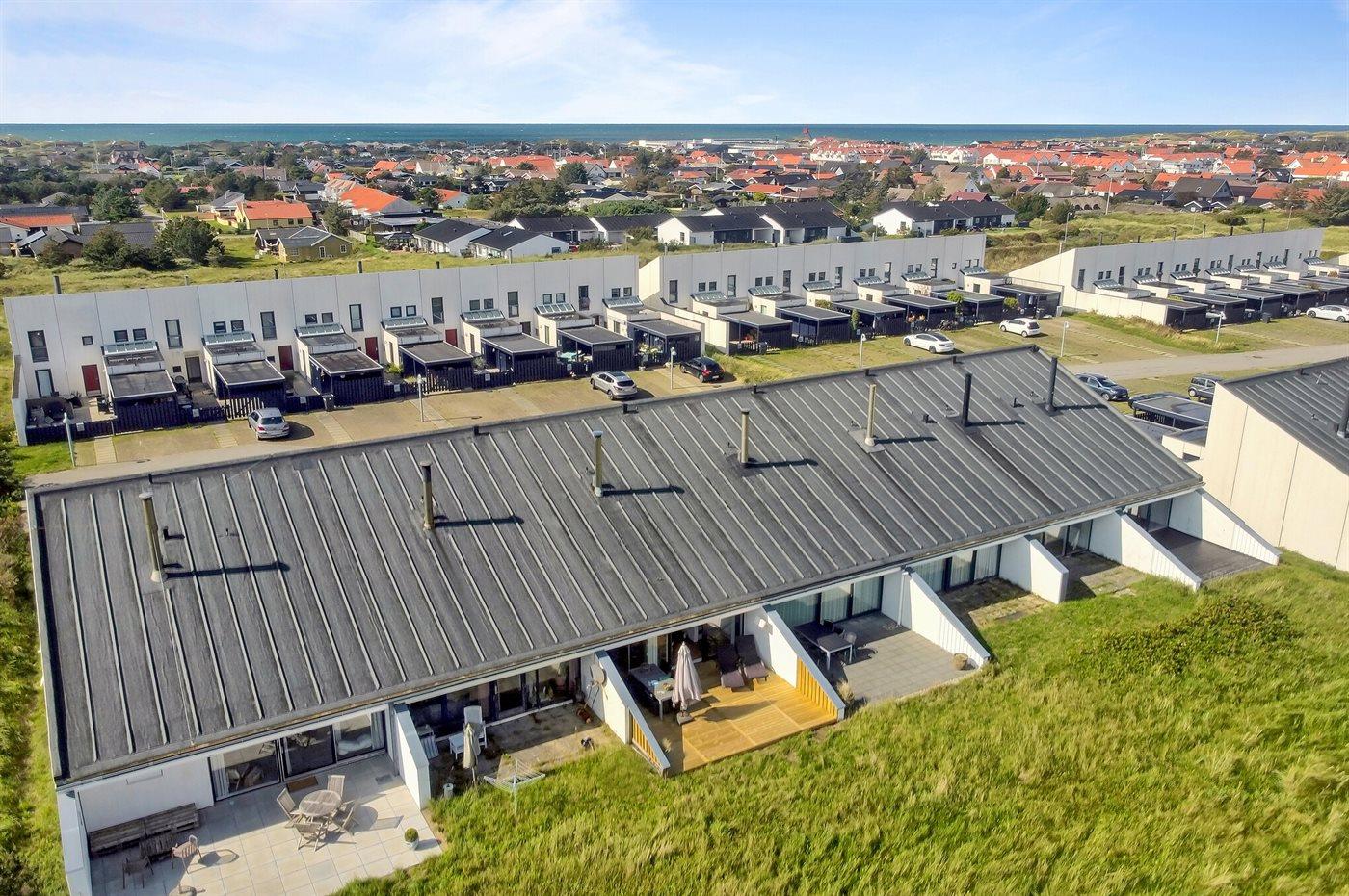 Schöne, helle zweistöckige Reihenhaus auf einem Dünengrundstück im attraktiven Ferren, in der Nähe der Nordsee und des Zentrums von Blokhus gelegen.