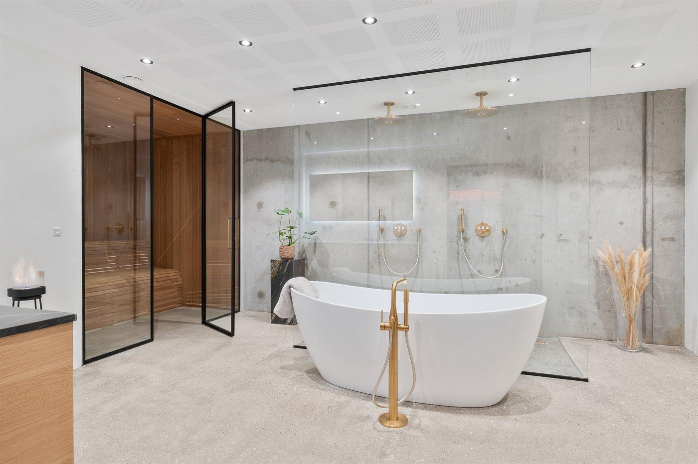 Es gibt 1 Badezimmer mit Fußbodenheizung und Badewanne sowie 2 Badezimmer mit Fußbodenheizung und Duschnische. Es steht eine Sauna zur Verfügung in der Sie sich so richtig entspannen können.