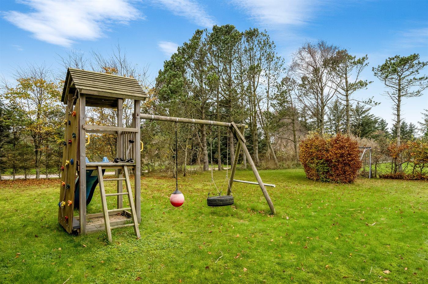 Das Haus lädt zu gemütlichen Stunden drinnen ein, ebenso wie zu schönem Beisammensein auf den großen Terrassen. Während die Erwachsenen sich auf der Terrasse entspannen, können die jüngeren Gäste und eventuell ein Hund sich im Garten mit Spielturm und Fußballtor austoben.