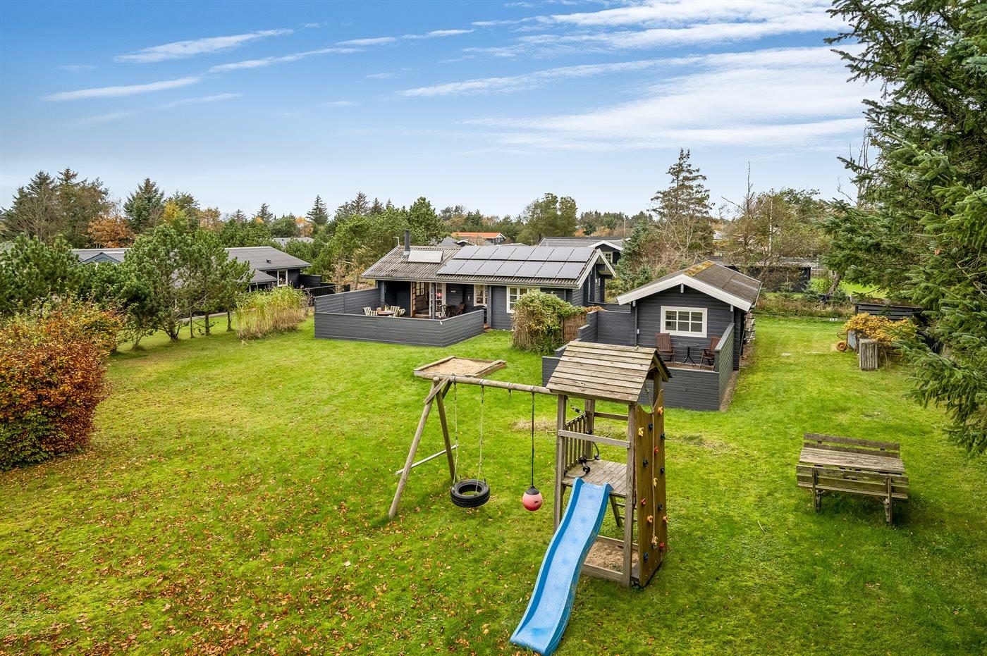 Die Ferienunterkunft liegt auf einem 1240 m² großen Gartengrundstück. Die Entfernung zum Meer beträgt 1100 m. Die nächste Einkaufsmöglichkeit liegt 1100 m entfernt. Es steht ein offenes Terrassenareal zur Verfügung. Außerdem gibt es überdachte Terrasse. Schaukel. Sandkasten. Spielturm. Fußballtor. Es steht ein Grill zur Verfügung. Parkplatz auf dem Grundstück.
