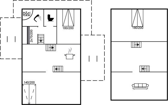 Die Schlafplätze verteilen sich auf 4 Schlafräume. 4 Schlafplätze in Doppelbetten. 2 Schlafplätze in einem Etagenbett. 2 Schlafplätze auf einer Doppelschlafcouch. 2 von diesen Schlafplätzen befinden sich im Aktivitätsraum.