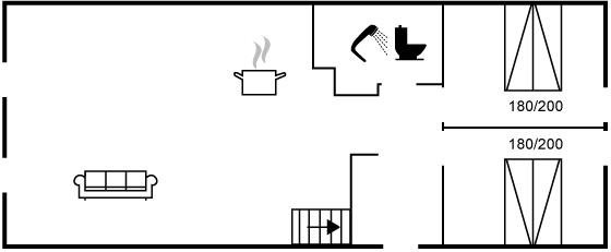 Die Schlafplätze verteilen sich auf 2 Schlafräume. 6 Schlafplätze in Doppelbetten. 2 von diesen Schlafplätzen befinden sich im offenen Obergeschoss.