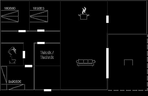 Die Schlafplätze verteilen sich auf 3 Schlafräume. 4 Schlafplätze in Doppelbetten. 2 Schlafplätze in Einzelbetten.