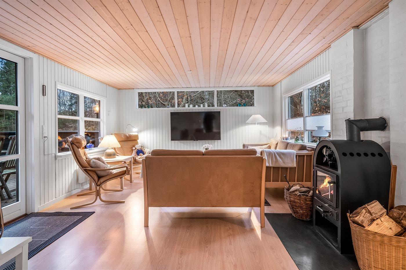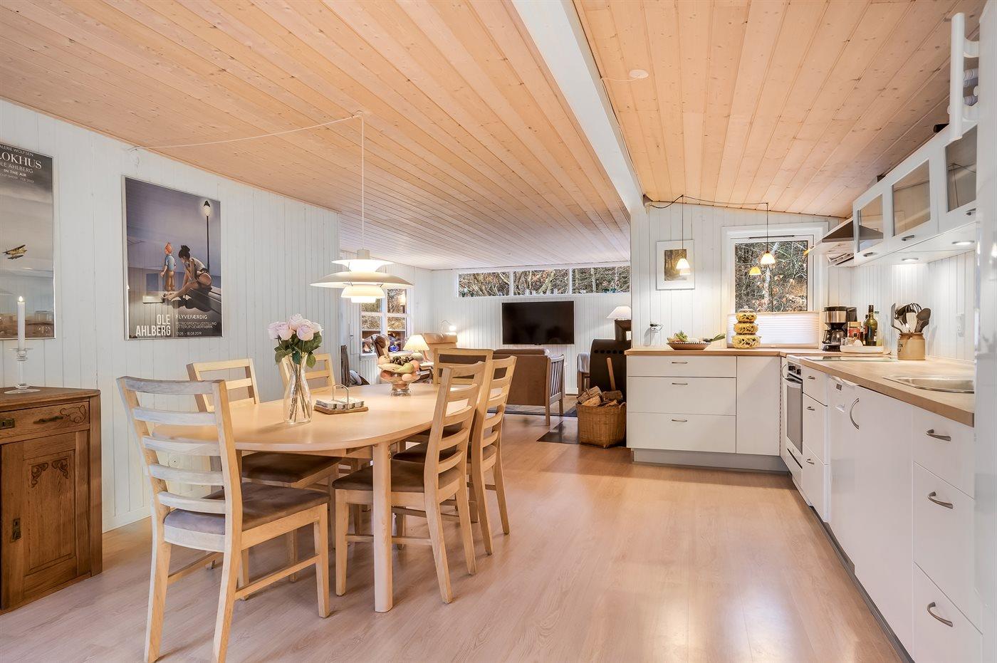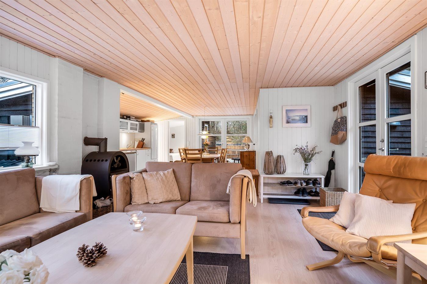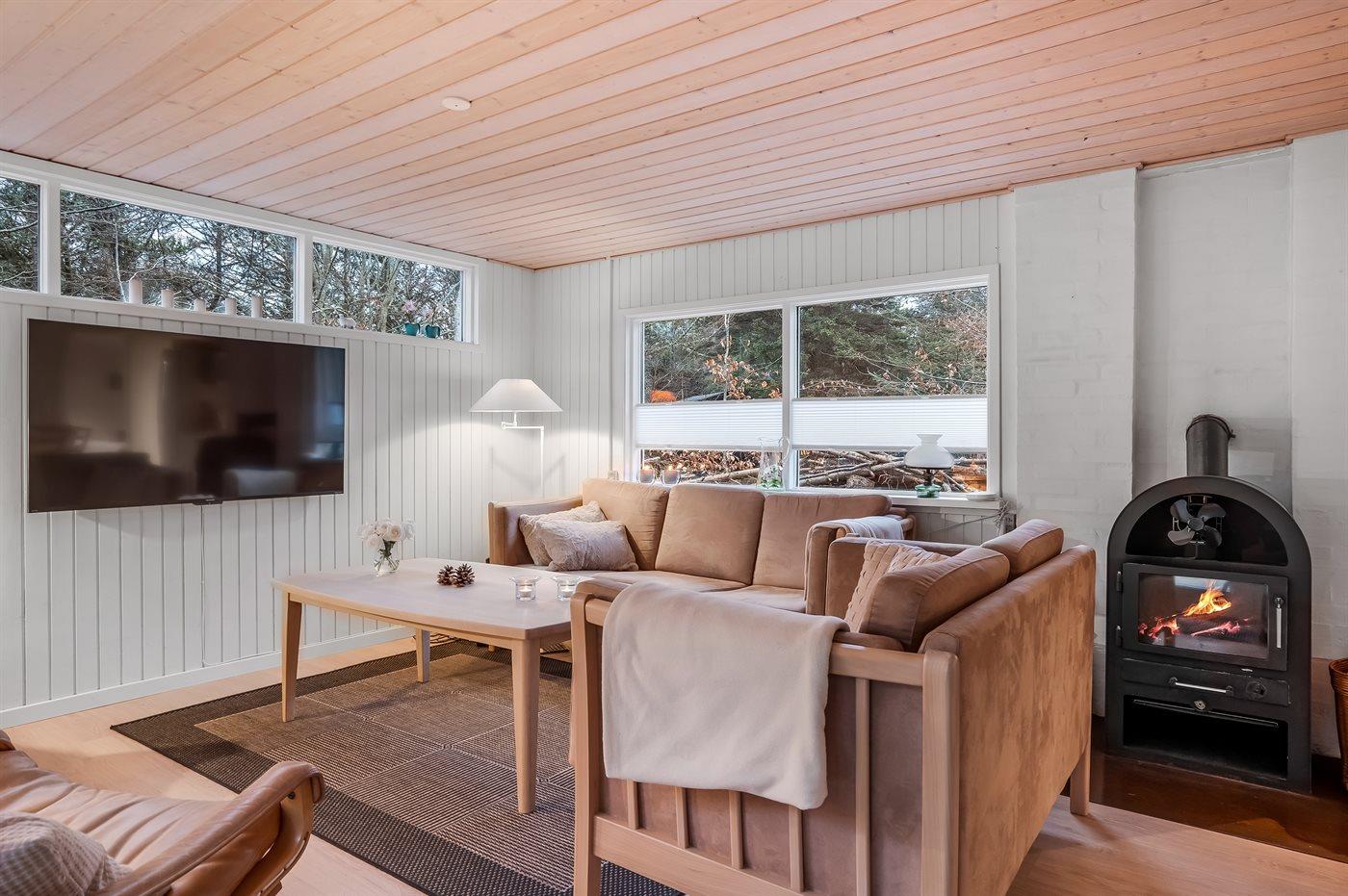 Im Inneren setzt sich die gemütliche Atmosphäre mit einer warmen und charmanten Einrichtung fort, die es leicht macht, sich wie zu Hause zu fühlen. Das Ferienhaus eignet sich ideal für Paare und Familien, die einen erholsamen Urlaub in naturnaher Umgebung verbringen möchten, mit allen Erlebnissen von Blokhus ganz in der Nähe.