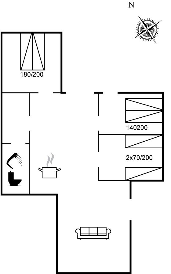 Die Schlafplätze verteilen sich auf 3 Schlafräume. 4 Schlafplätze in Doppelbetten. 2 Schlafplätze in Einzelbetten.