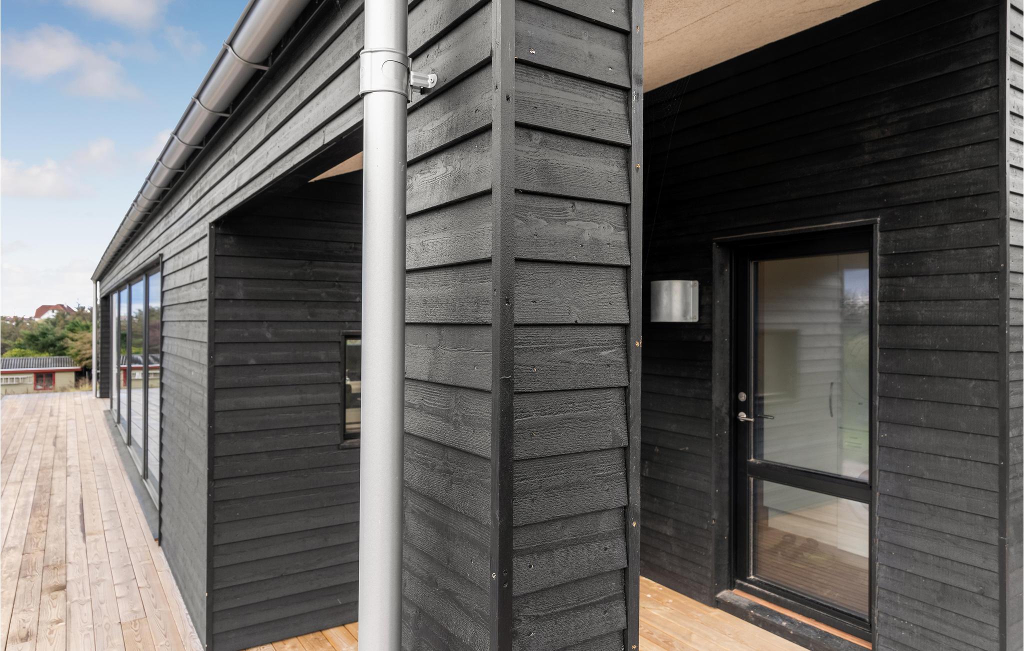 Modernes Ferienhaus in Blokhus mit Meerblick und geschützter Terrasse für entspannte Stunden.