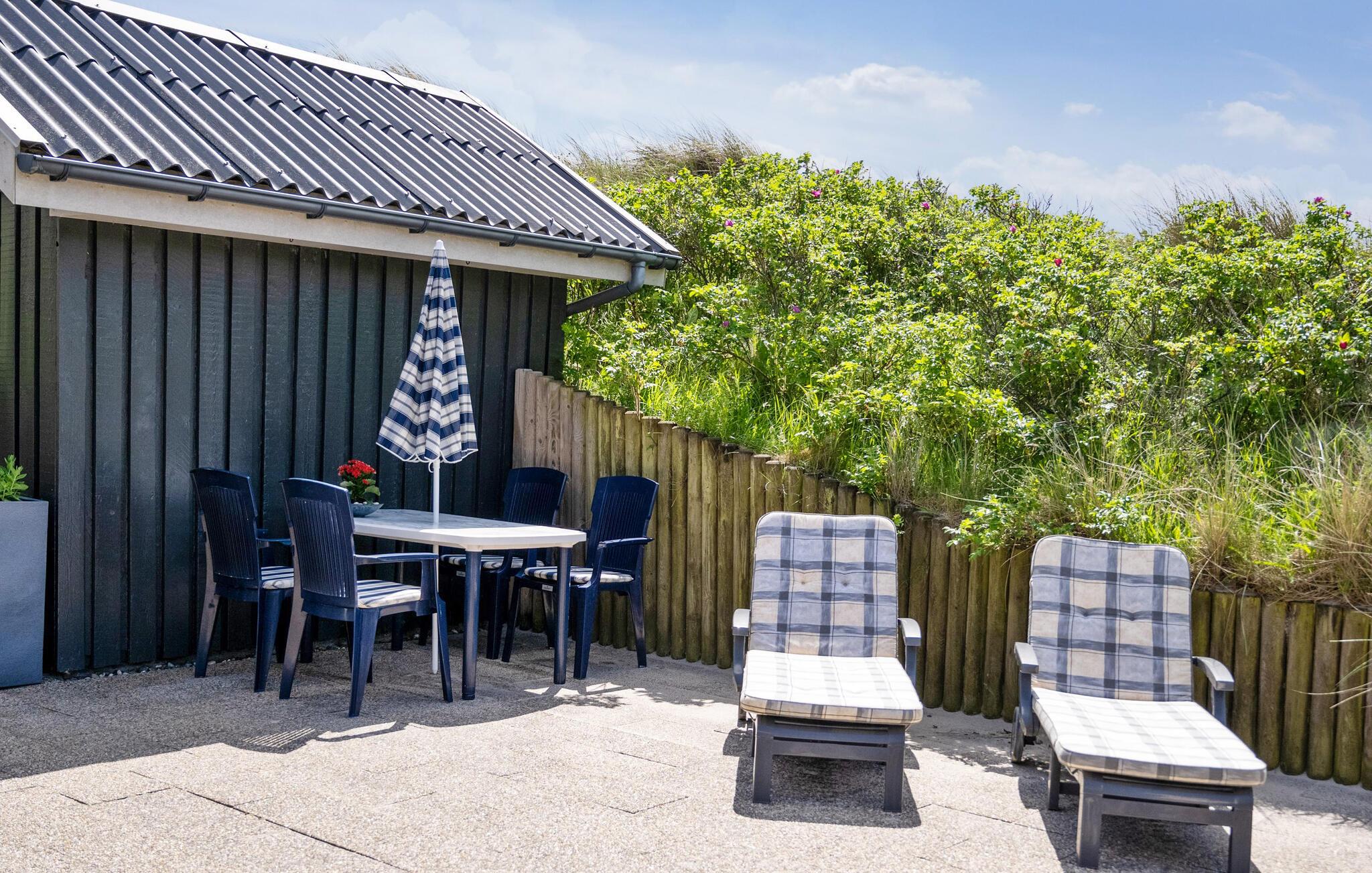 Das Grundstück ist naturbelassen und fügt sich harmonisch in die Umgebung ein. Treten Sie hinaus auf die große Terrasse, die windgeschützt zwischen den Dünen liegt. Frühstücken Sie in der Sonne, entspannen Sie sich auf den Liegestühlen oder genießen Sie abends den Grillduft in der frischen Meeresluft. Nach einem Tag am Strand sorgen die Sauna und der Whirlpool für wohltuende Entspannung.