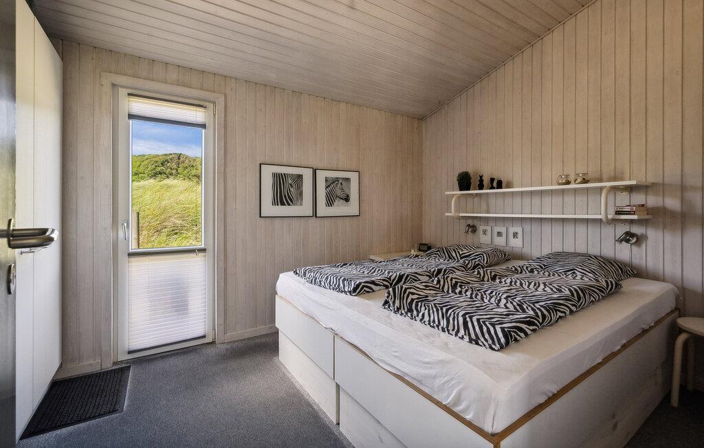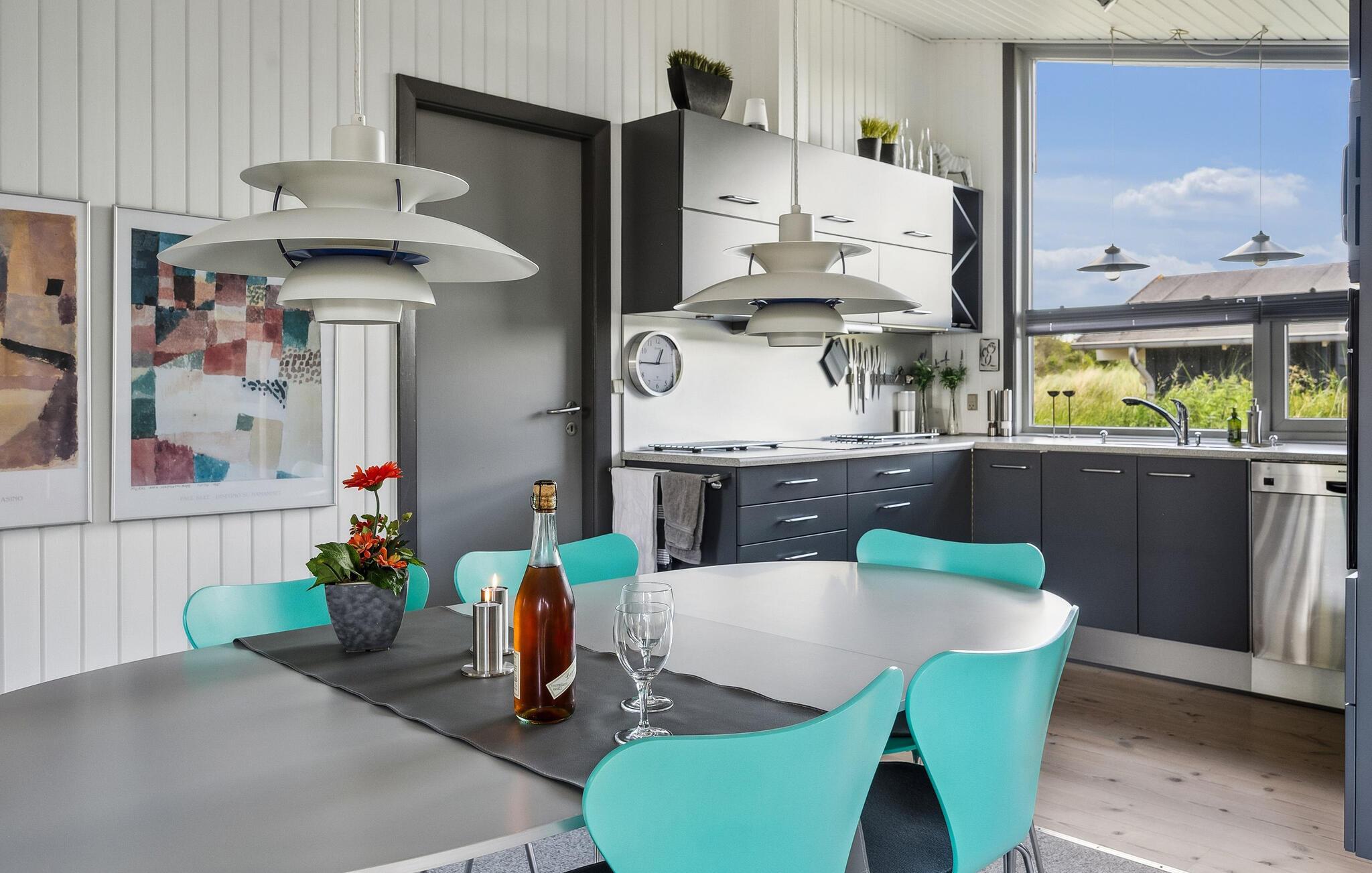 Im Inneren Ihres Ferienhauses erwartet Sie ein heller, offener Wohnbereich mit großen Fenstern, die viel Tageslicht hereinlassen und den Blick in die Dünen freigeben. Machen Sie es sich auf dem Sofa gemütlich, lesen Sie ein Buch oder genießen Sie den Schein des Kaminofens. In der modernen Küche macht das Kochlöffel schwingen mit der ganzen Familie richtig Spaß. Am Esstisch finden Familie und Freunde Platz, um den Tag bei gutem Essen und Gesprächen ausklingen zu lassen.