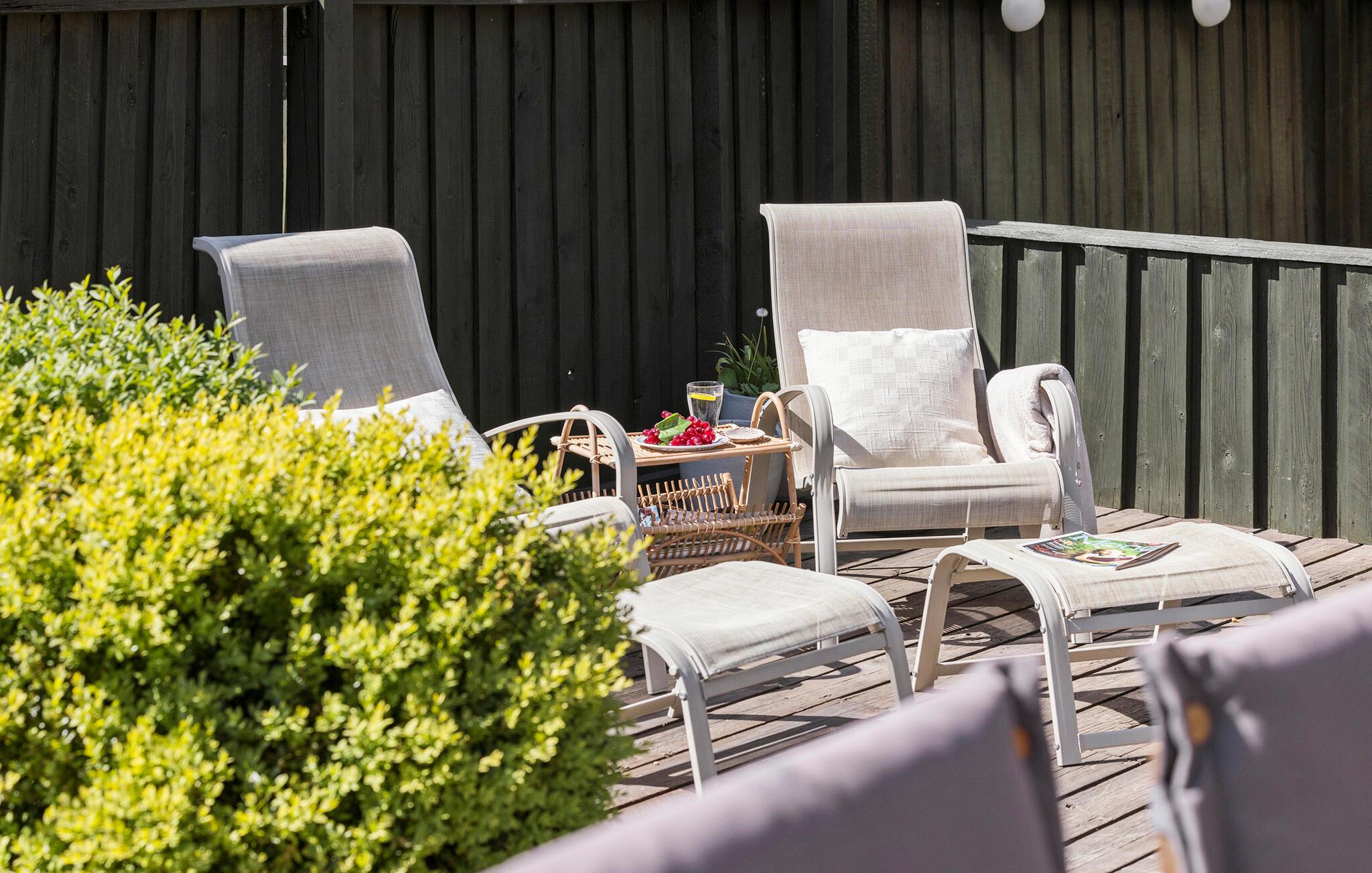 Auf dem weitläufigen Naturgrundstück stehen Ihren Kindern reizvolle Spielmöglichkeiten bereit. Messen Sie sich beim Krocket oder beim Stangentennis, verausgaben Sie sich beim Wikingerspiel, entfachen Sie den Grill und nehmen Sie auf der einladenden Terrasse Platz.