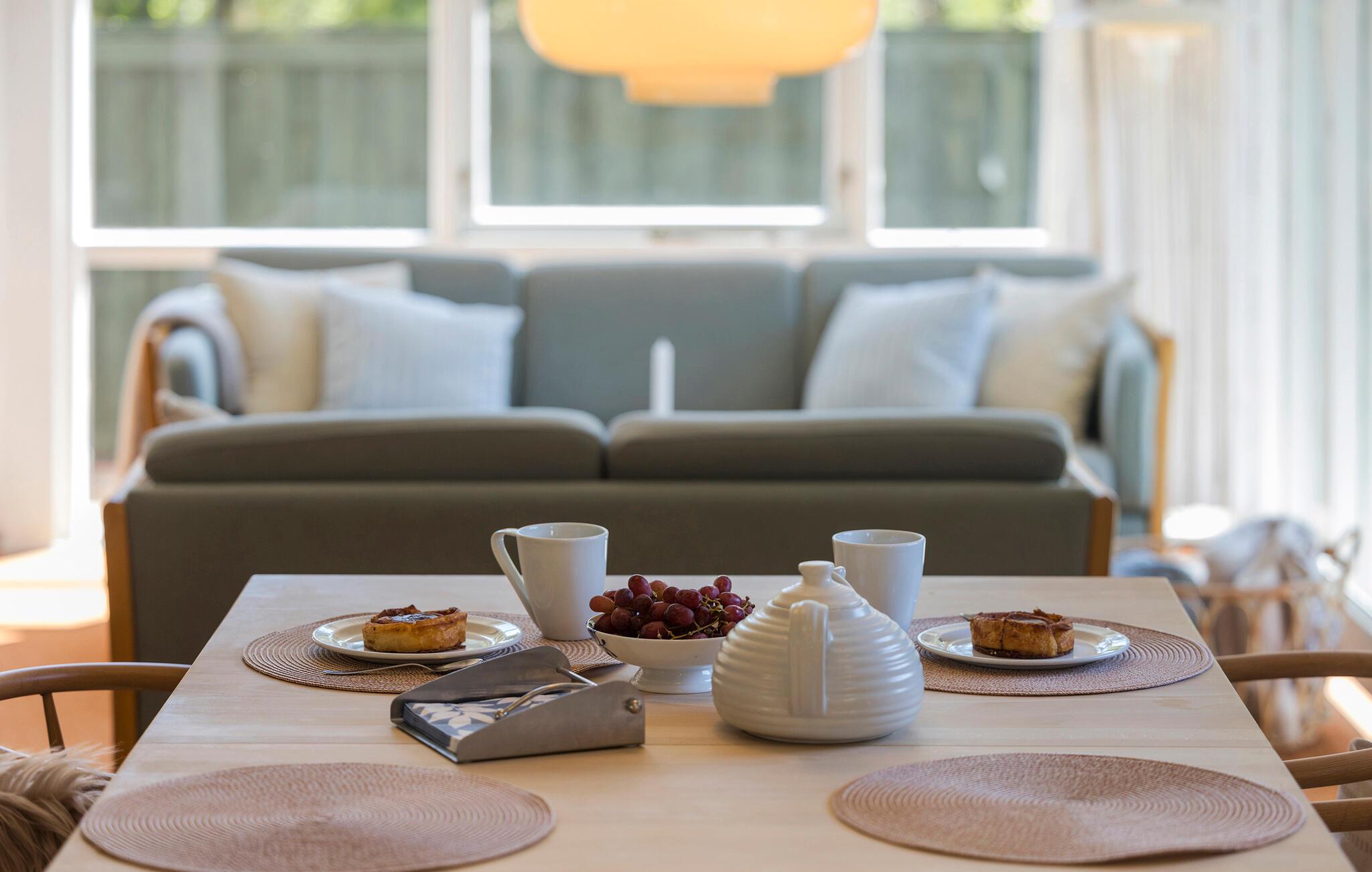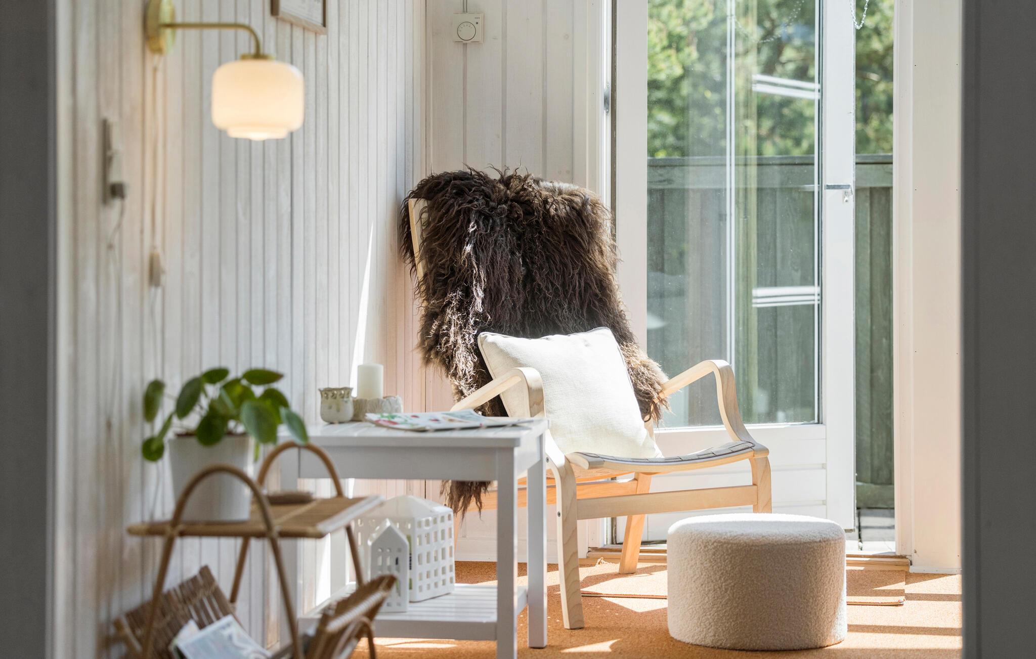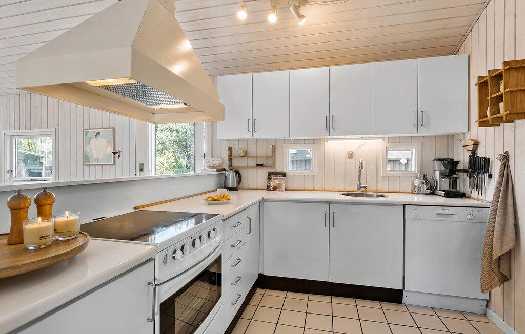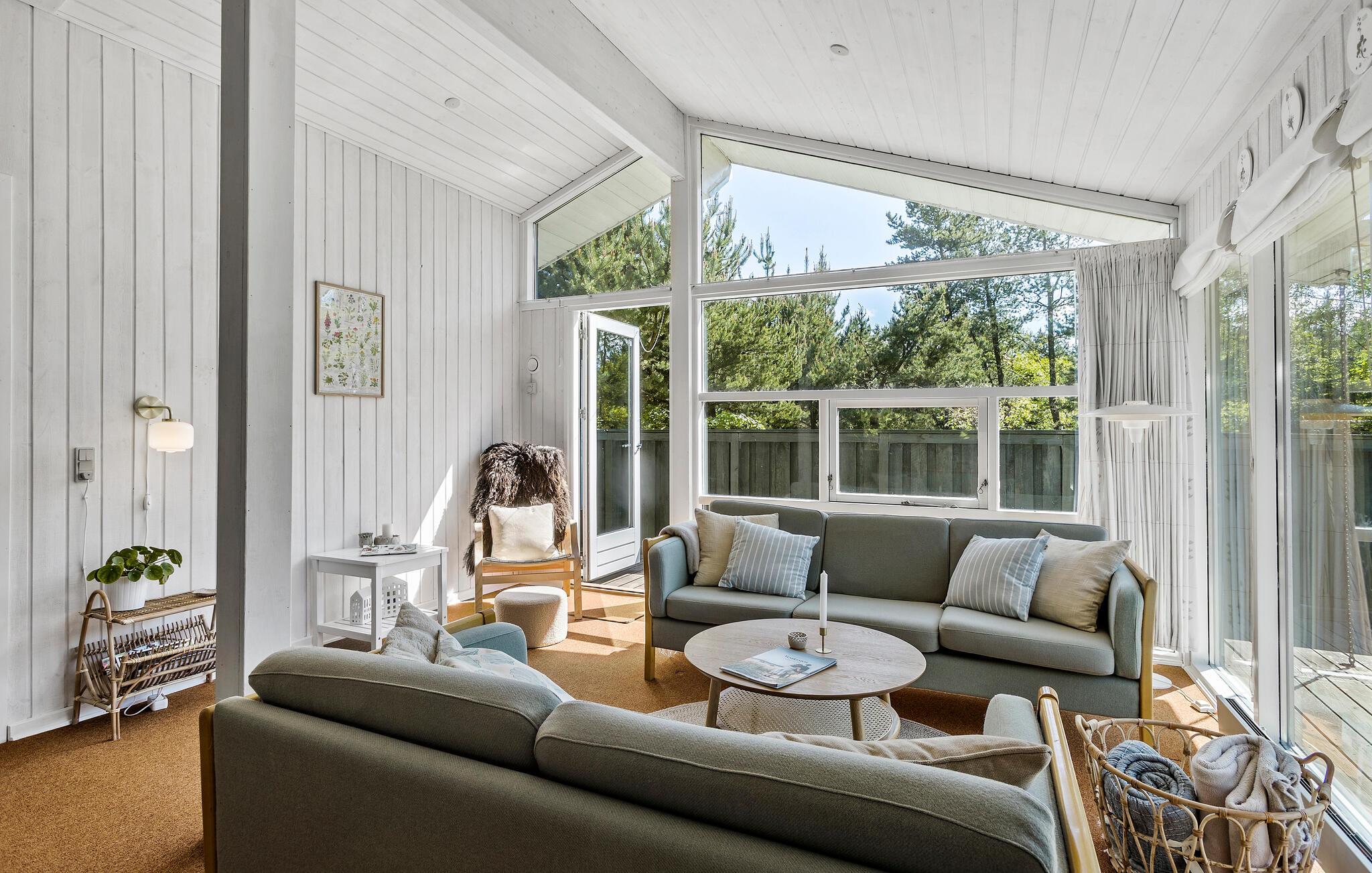 Windgeschützt vom anliegenden Wald, bietet Ihnen dieses behagliche Feriendomizil ein gemütliches Zuhause fernab vom Alltag. Eine helle Holzverkleidung und große Fensterfronten schaffen im geschmackvoll eingerichteten Interieur eine frische und gepflegte Atmosphäre. Entfachen Sie den Kaminofen, genießen Sie gemeinsame Mahlzeiten und fröhliche Spieleabende am einladenden Esstisch oder machen Sie es sich für einen Filmabend auf im Wohnzimmer bequem.