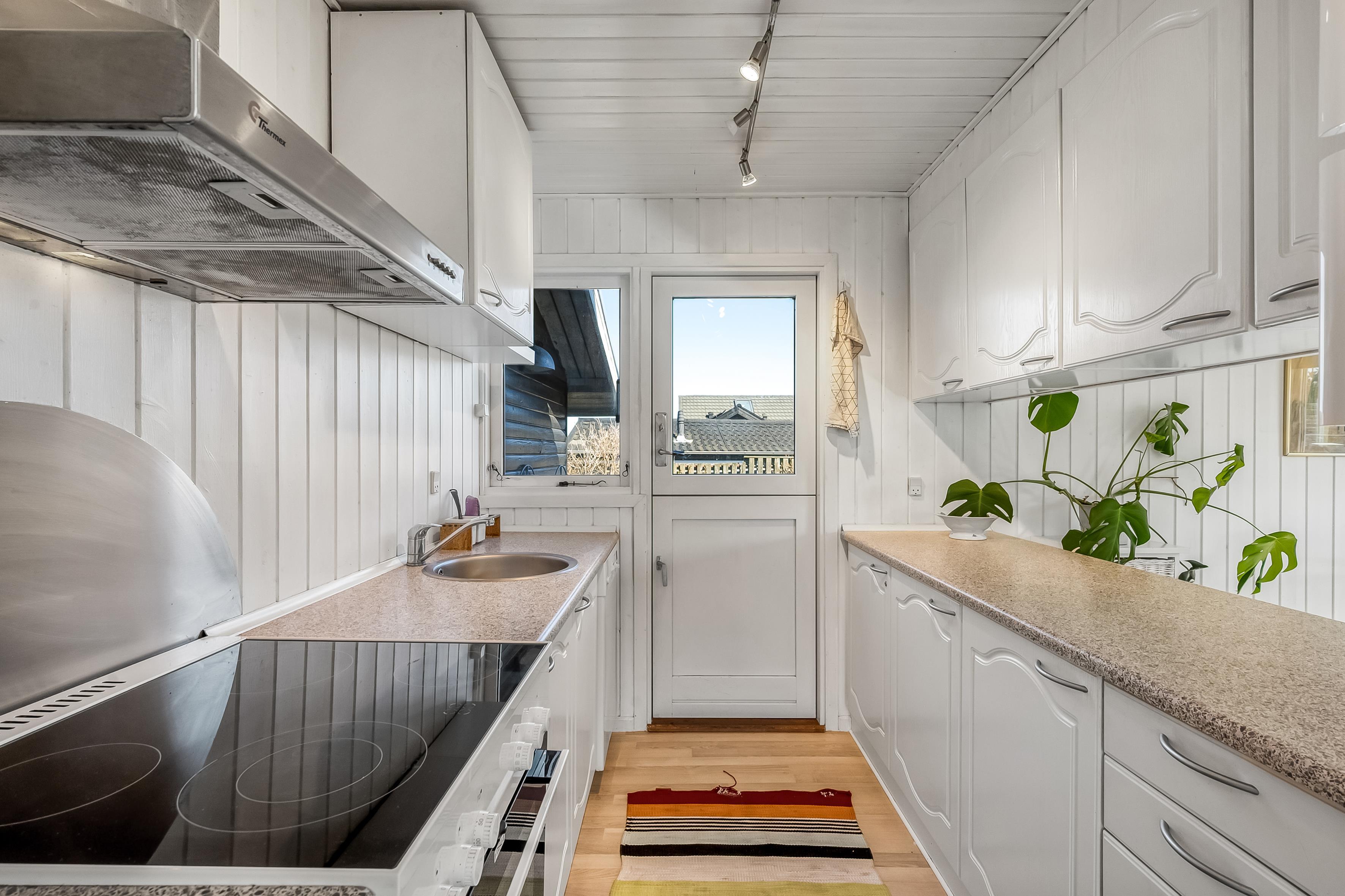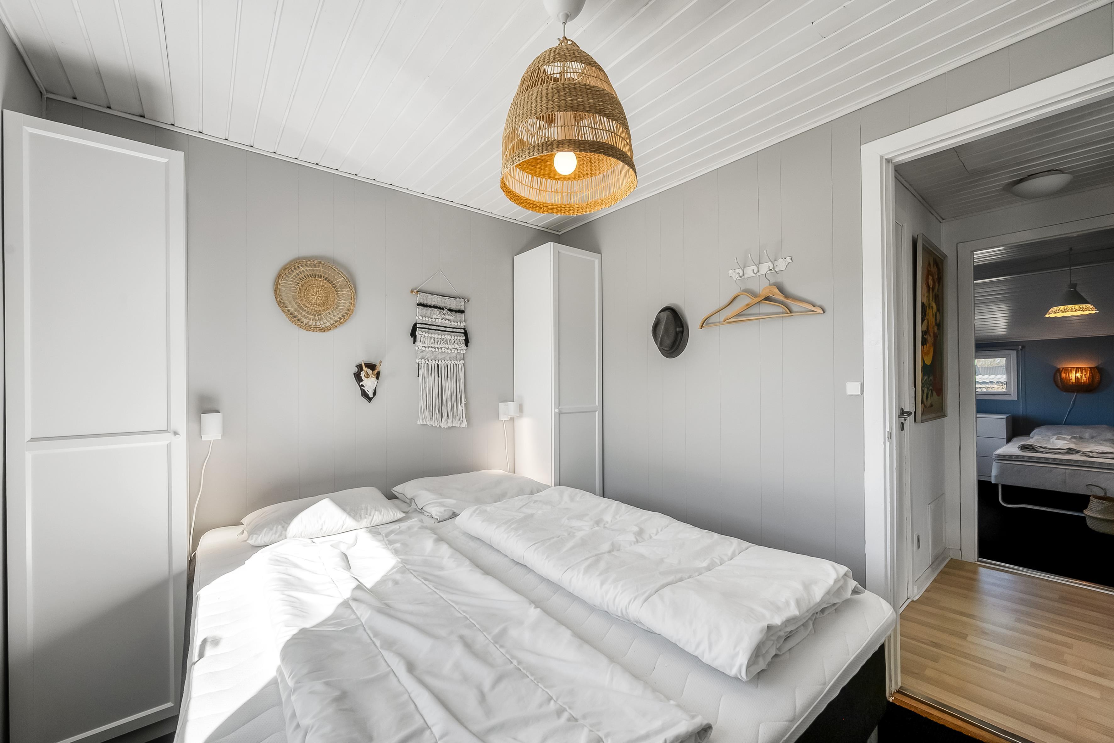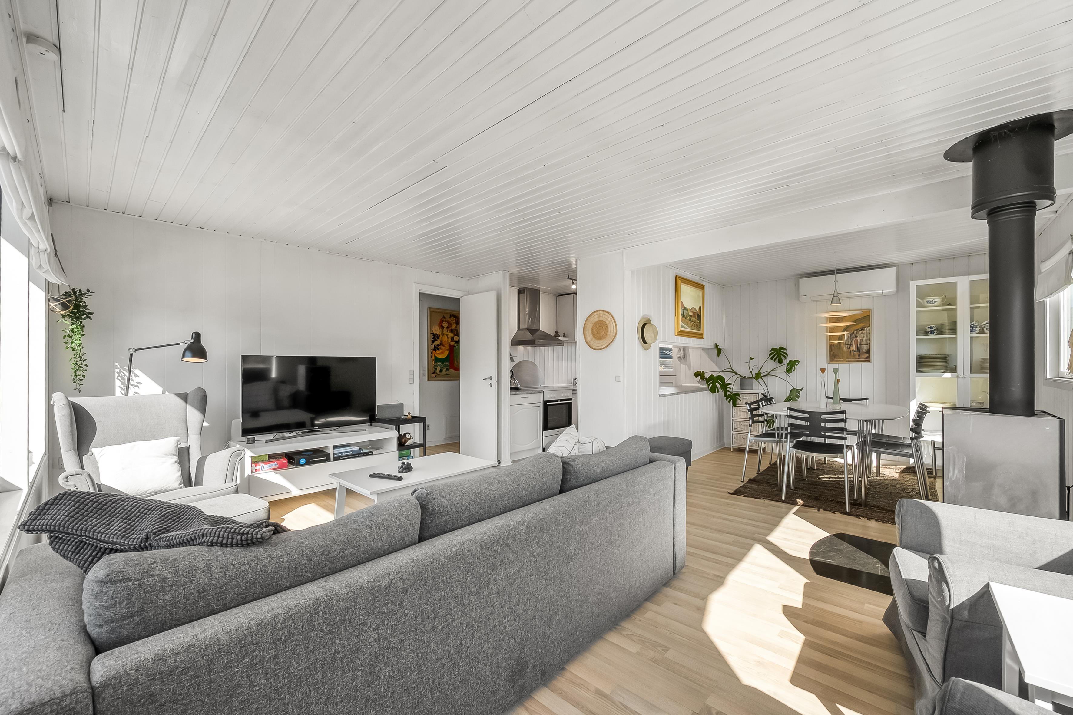 Wenn Sie den nostalgischen Charme traditioneller Sommerhäuser lieben, ist dieses Ferienhaus eine großartige Wahl. Mit 60 m² ist es gemütlich und perfekt für 4 Personen + ein Baby. Vom Eingangsbereich gelangen Sie in das helle Wohnzimmer mit Holzofen, Holzböden und offener Verbindung zur Küche. Das Wohnzimmer führt zu einer abgeschirmten, nach Süden ausgerichteten Terrasse, während die Küche Zugang zu einer weiteren Terrasse bietet. Das Badezimmer wurde modernisiert, aber das Haus behält seinen ursprünglichen Stil von 1970. Es gibt zwei Schlafzimmer, eines davon mit direktem Zugang zur westlich ausgerichteten Terrasse.