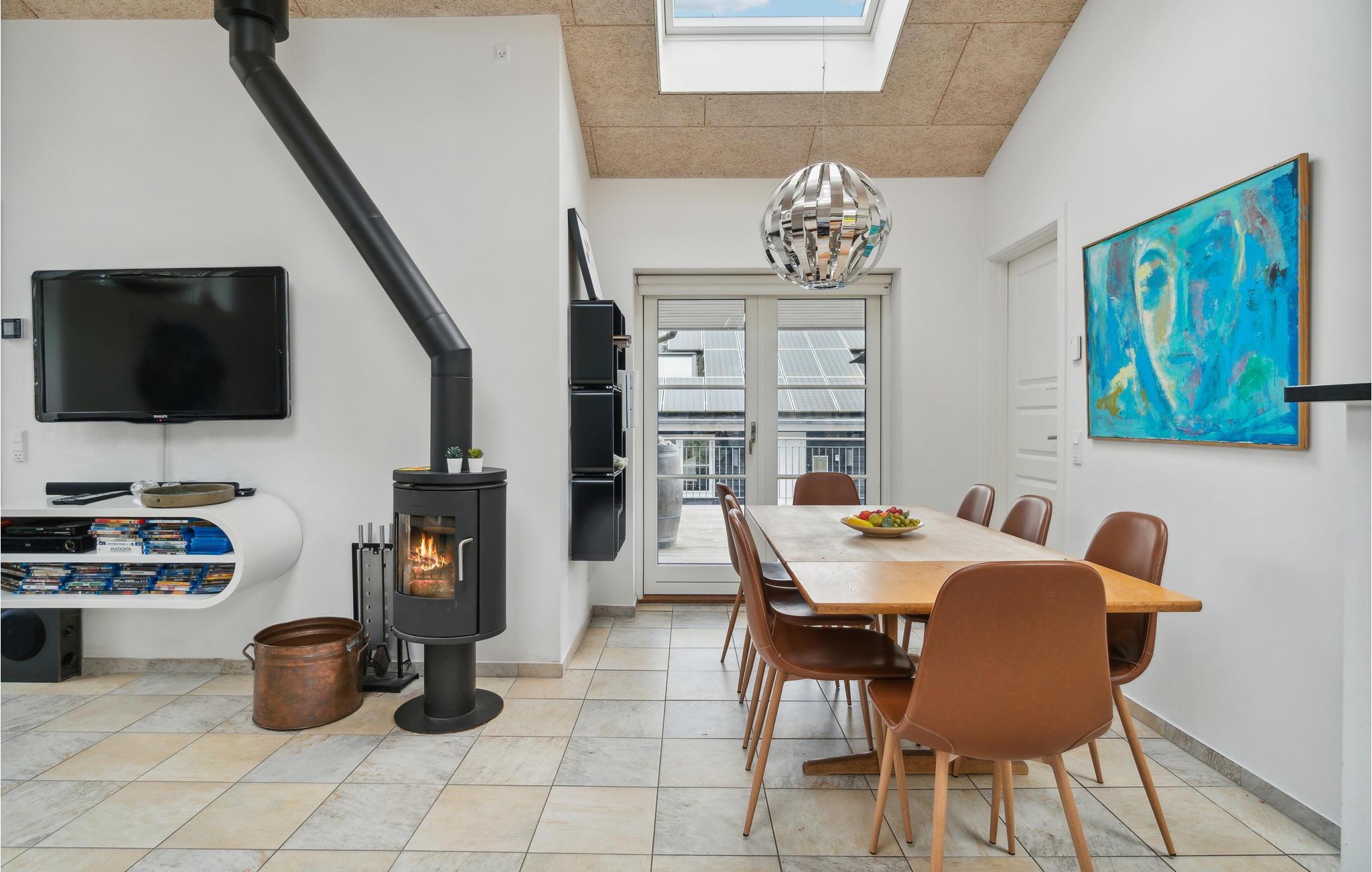 Dieses Haus ist modern, gemütlich und bietet viel Platz, so dass Sie hier mit der ganzen Familie entspannen können. Das Innere ist offen, hell und luftig, dank der hohen Decken und der vielen Fenster, die natürliches Licht in den offenen Wohnbereich einfallen lassen, wo sich Küche und Wohnzimmer treffen und einen schönen Rahmen für viele gemütliche Momente schaffen. Abends können Sie den Holzofen anfeuern, die Brettspiele hervorholen oder Snacks für einen gemütlichen Filmabend kaufen. Sie können sich auch gegenseitig zu Duellen am Billardtisch herausfordern oder in der Sauna alle Alltagssorgen ausschwitzen.