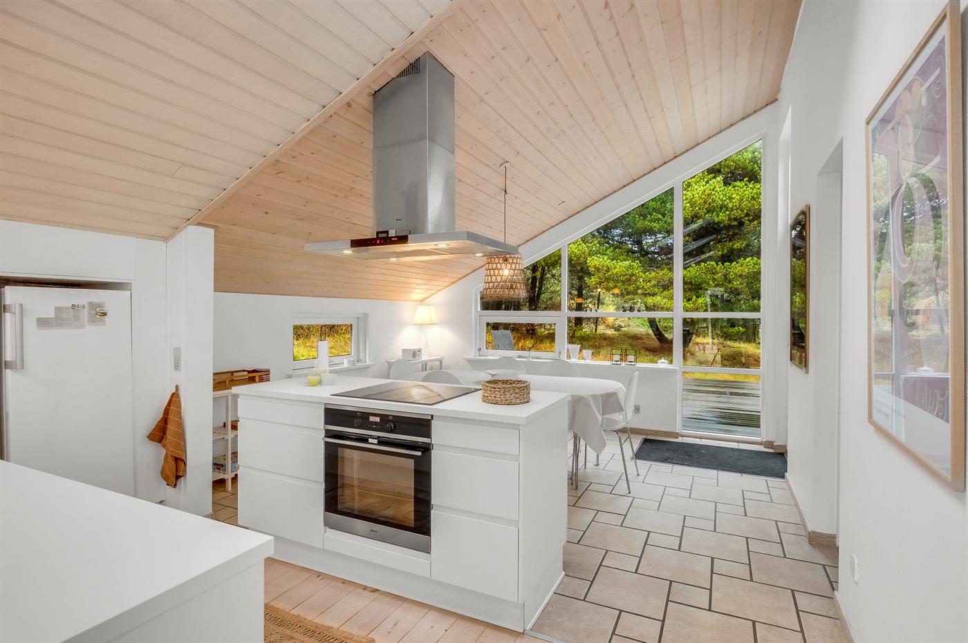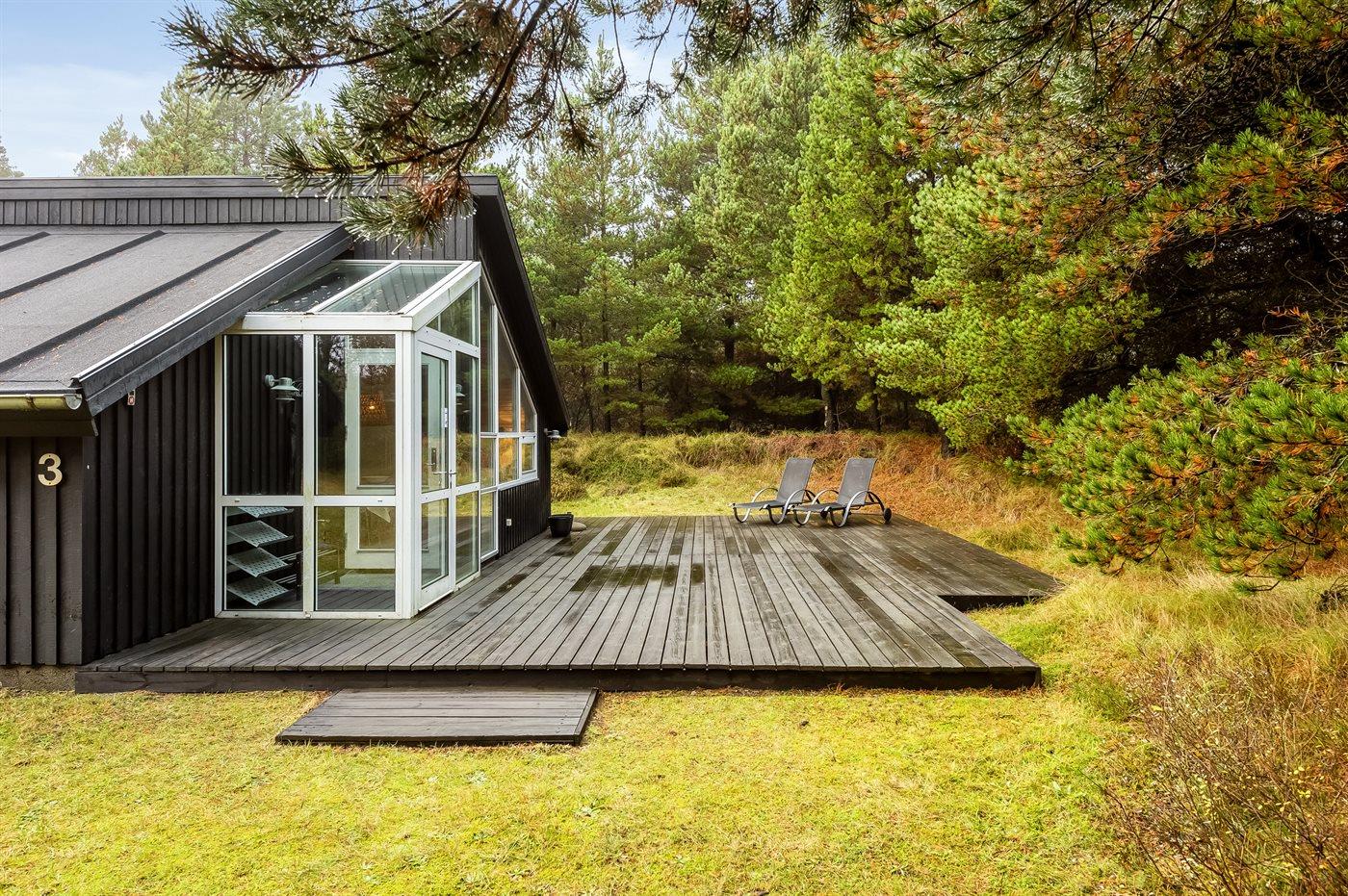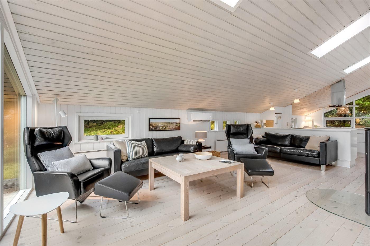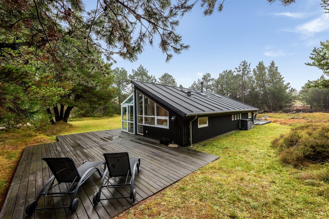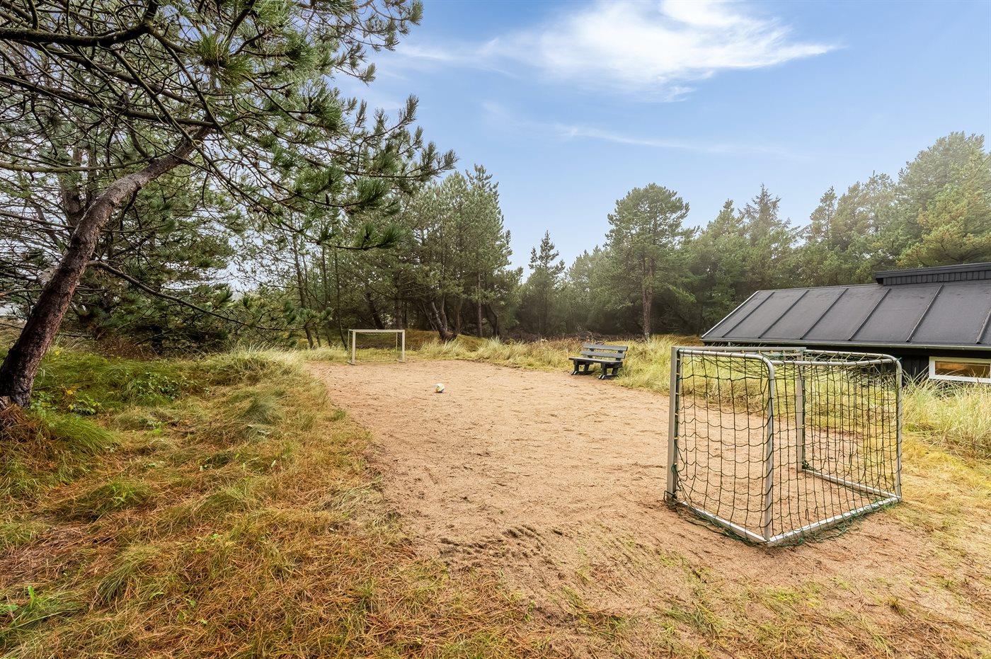 Das Ferienhaus liegt auf einem leicht hügeligen Naturgrundstück mit Heidekraut und Platz für Ballspiele und andere Aktivitäten im Freien. Das Haus liegt in einer ruhigen Gegend in der Nähe von Pfade und Radwege, die hinunter zum Strand und zum Lakolk-Einkaufszentrum führen, wo es Restaurants und Einkaufsmöglichkeiten gibt.
