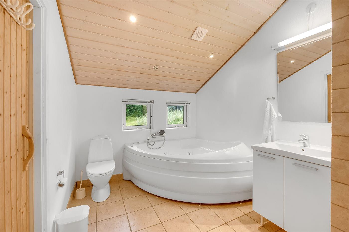 Es gibt 1 Badezimmer mit Duschnische und 1 Toilette.. Fußbodenheizung in 1 Badezimmer. Es steht eine Sauna zur Verfügung in der Sie sich so richtig entspannen können.