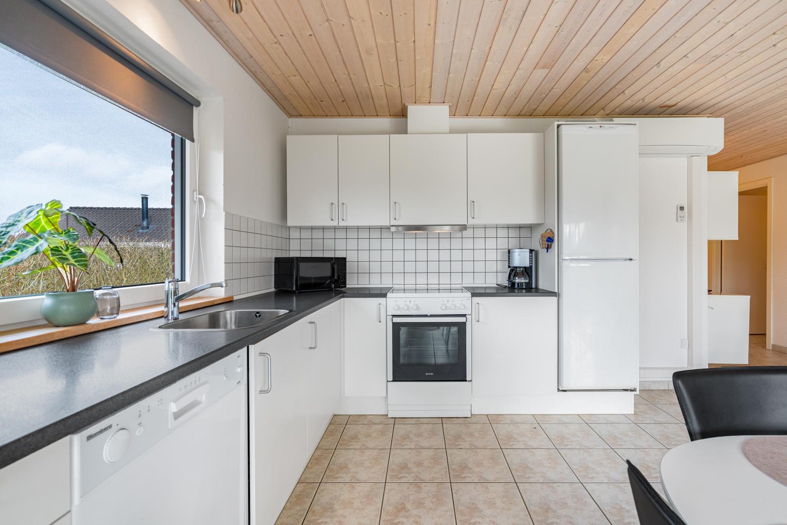 Im Wohnzimmer lädt der Kaminofen zu gemütlichen Abenden ein – vielleicht bei einem Glas Wein, während draußen der Wind über die Dünen weht. Die moderne Küche ist bestens ausgestattet, inklusive Spülmaschine, damit ihr im Urlaub auf keinen Komfort verzichten müsst. Waschmaschine und Trockner stehen euch ebenfalls zur Verfügung – praktisch, wenn ihr länger bleibt.