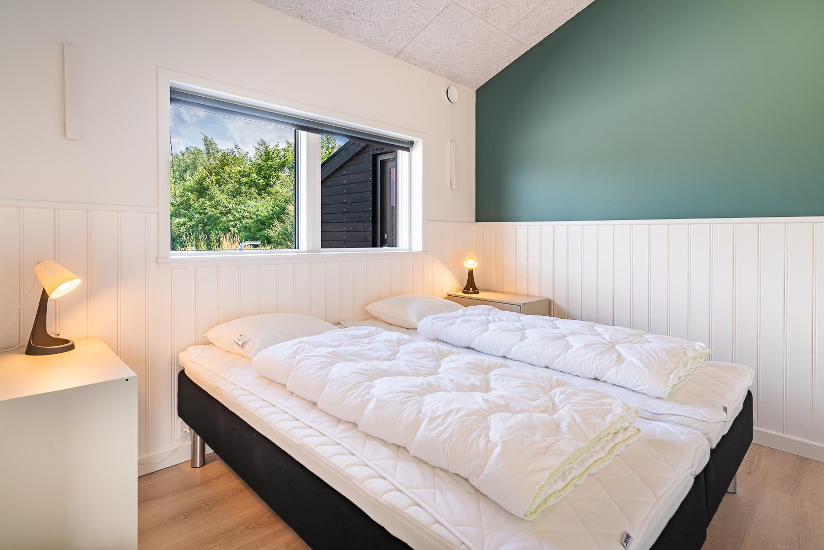 Das Ferienhaus bietet insgesamt vier Schlafzimmer, jeweils mit einem Doppelbett ausgestattet – ideal für Familien oder gemeinsam reisende Paare. Zwei moderne Badezimmer mit Fußbodenheizung bieten zusätzlichen Komfort. In einem der Badezimmer erwartet euch ein Whirlpool und auch an die Kleinsten wurde mit einer Badewanne für Babys gedacht.
