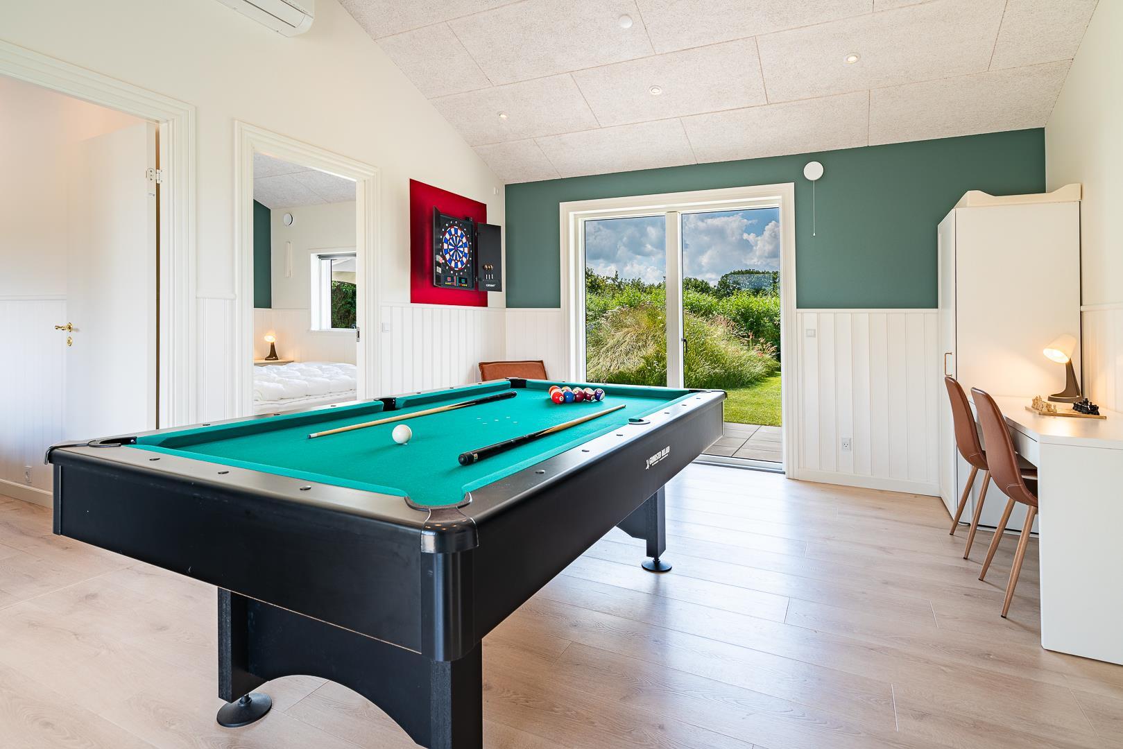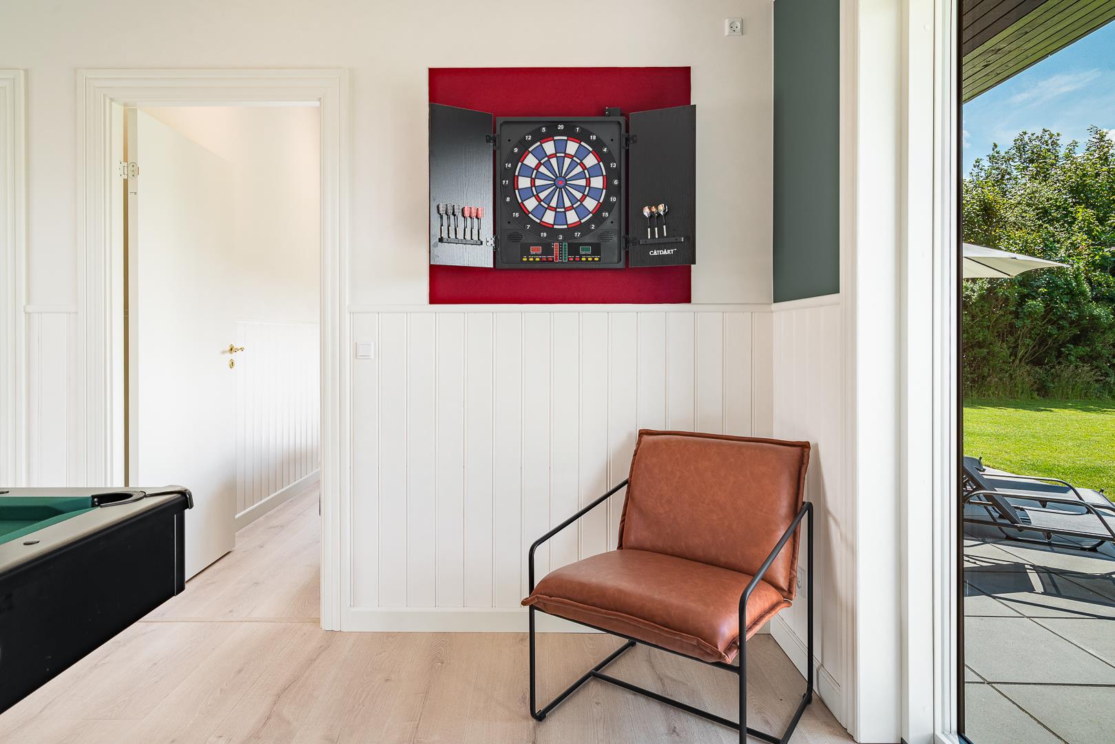 Für Unterhaltung sorgt der separate Aktivitätsraum mit Billardtisch und Dartscheibe – ein echtes Highlight für Familien und Freunde, die auch im Urlaub gerne spielen und sich messen.
