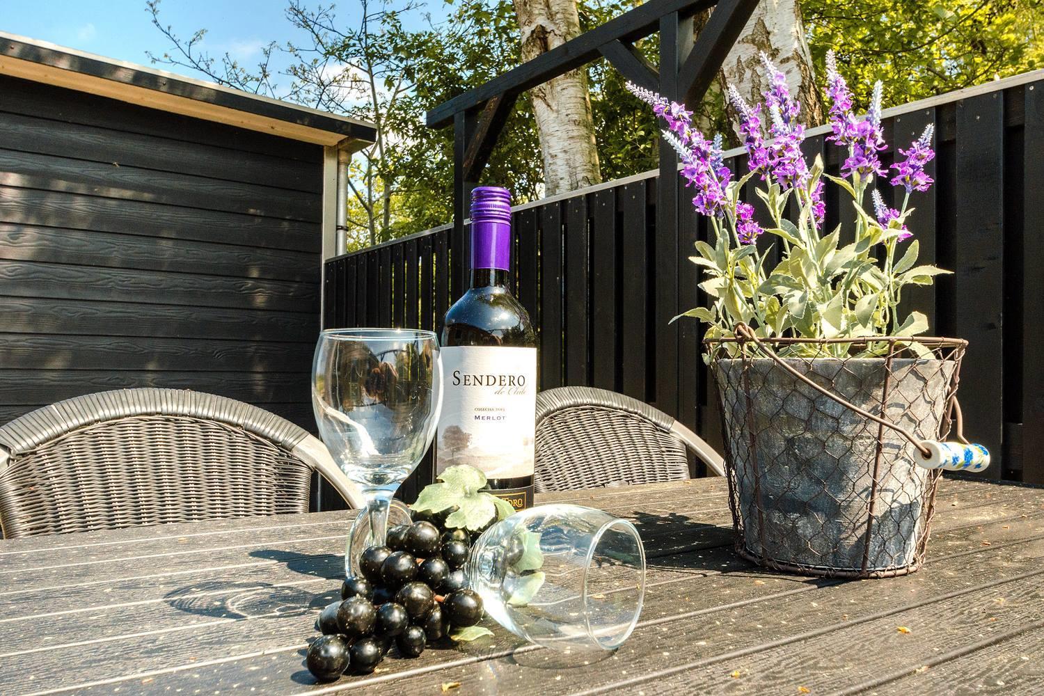 Im Außenbereich deines Ferienhauses erwartet dich pure Entspannung unter freiem Himmel. Ob Sonne oder Wind – hier findest du immer ein schönes Plätzchen. Besonders praktisch ist die überdachte Terrasse, auf der du auch bei wechselhaftem Wetter gemütlich frühstücken, lesen oder den Abend ausklingen lassen kannst.