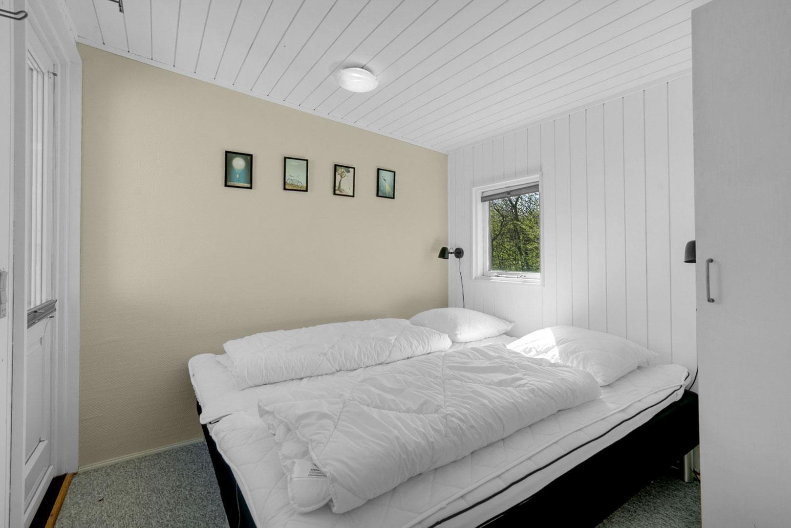 Mit 2 Schlafzimmern – mit Doppelbett – bietet das Ferienhaus Platz für die ganze Familie. Das Badezimmer verfügt über Dusche und WC.