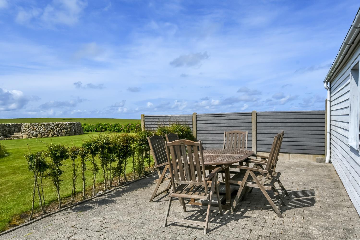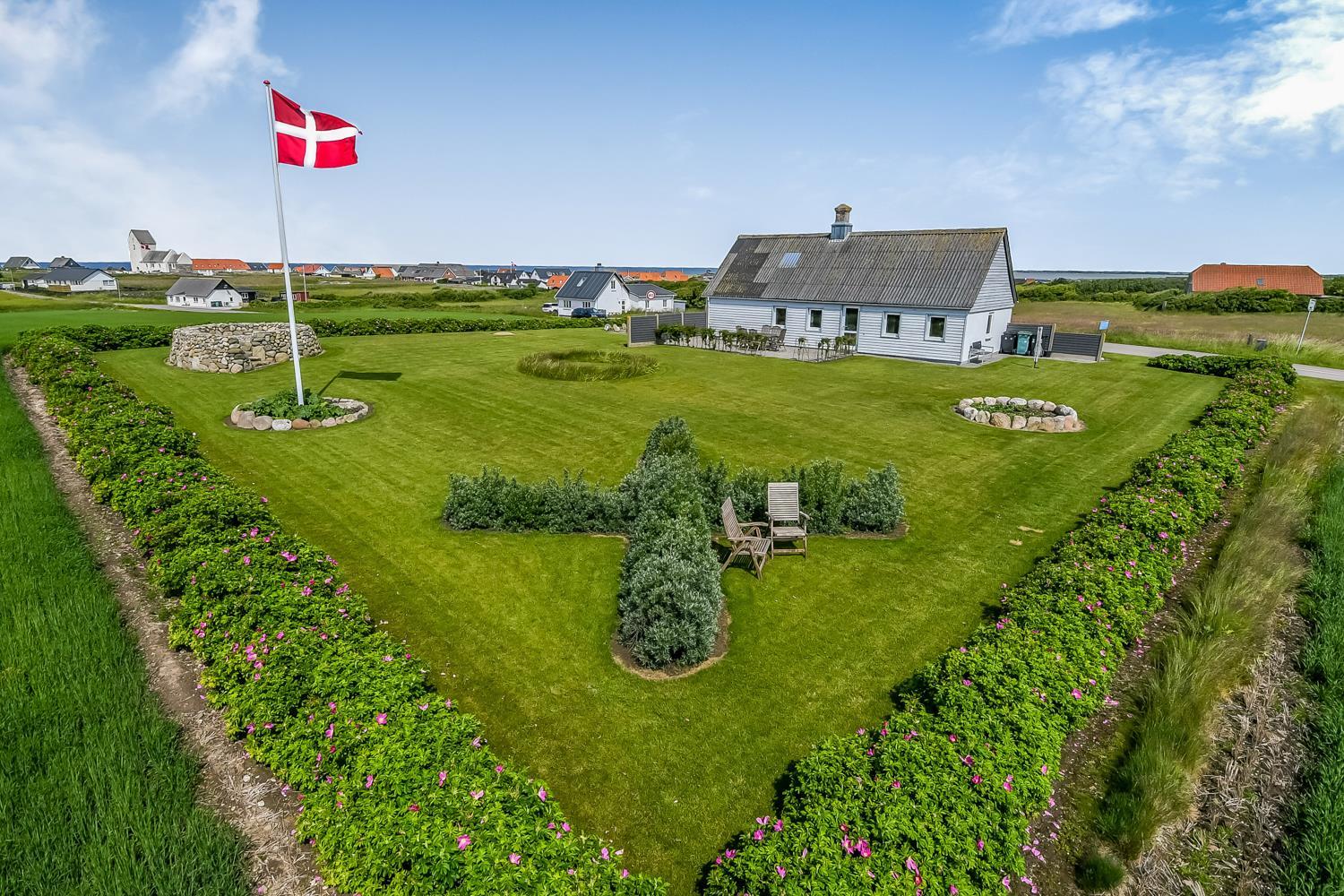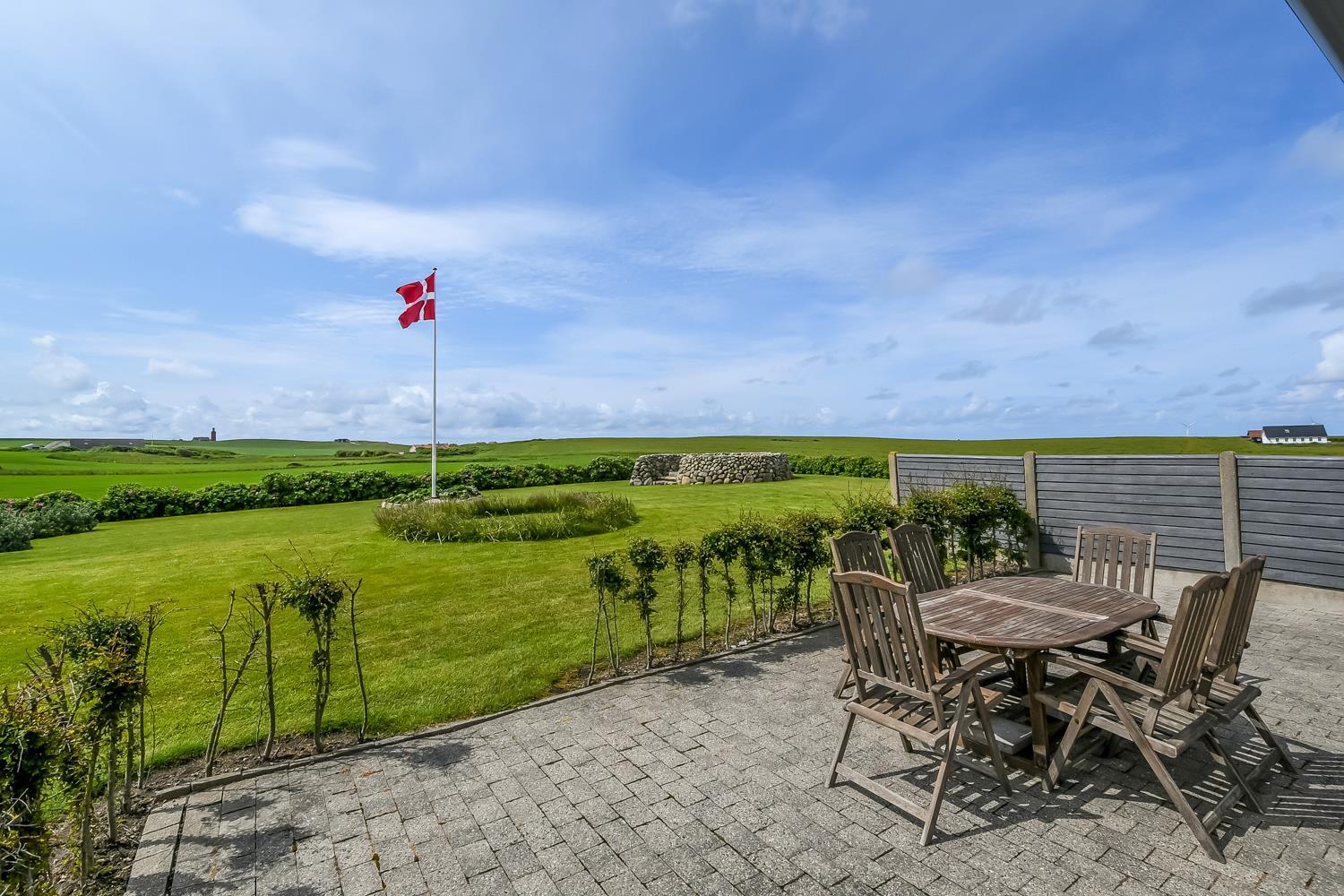 Im Außenbereich finden Sie mehrere Terrassen mit Gartenmöbeln und Grill – perfekt, um die großartige Aussicht auf die Nordsee, den Leuchtturm von Bovbjerg und den Ferring See zu genießen. Der einzigartige Garten ist mit kleinen künstlerischen Elementen gestaltet und lädt zur Ruhe und Entspannung ein.