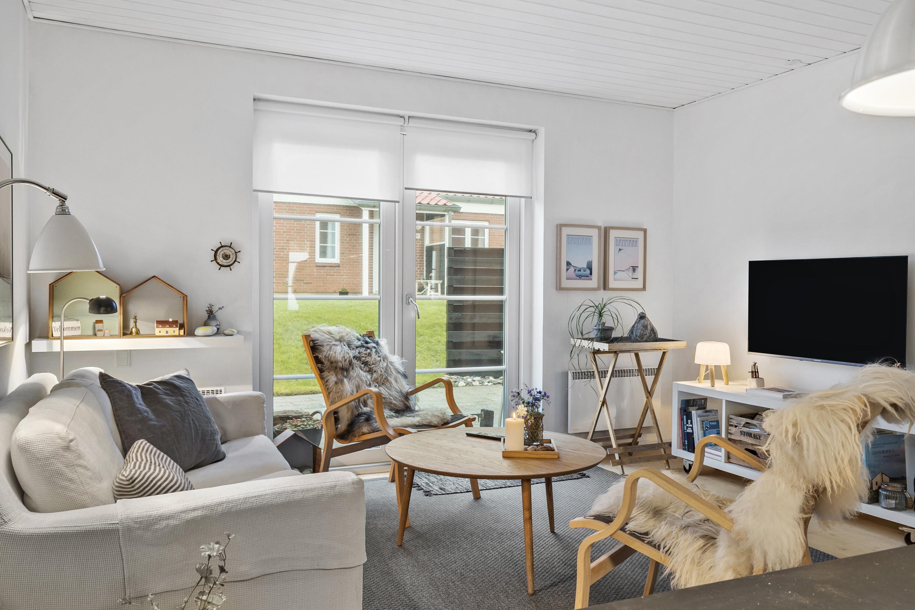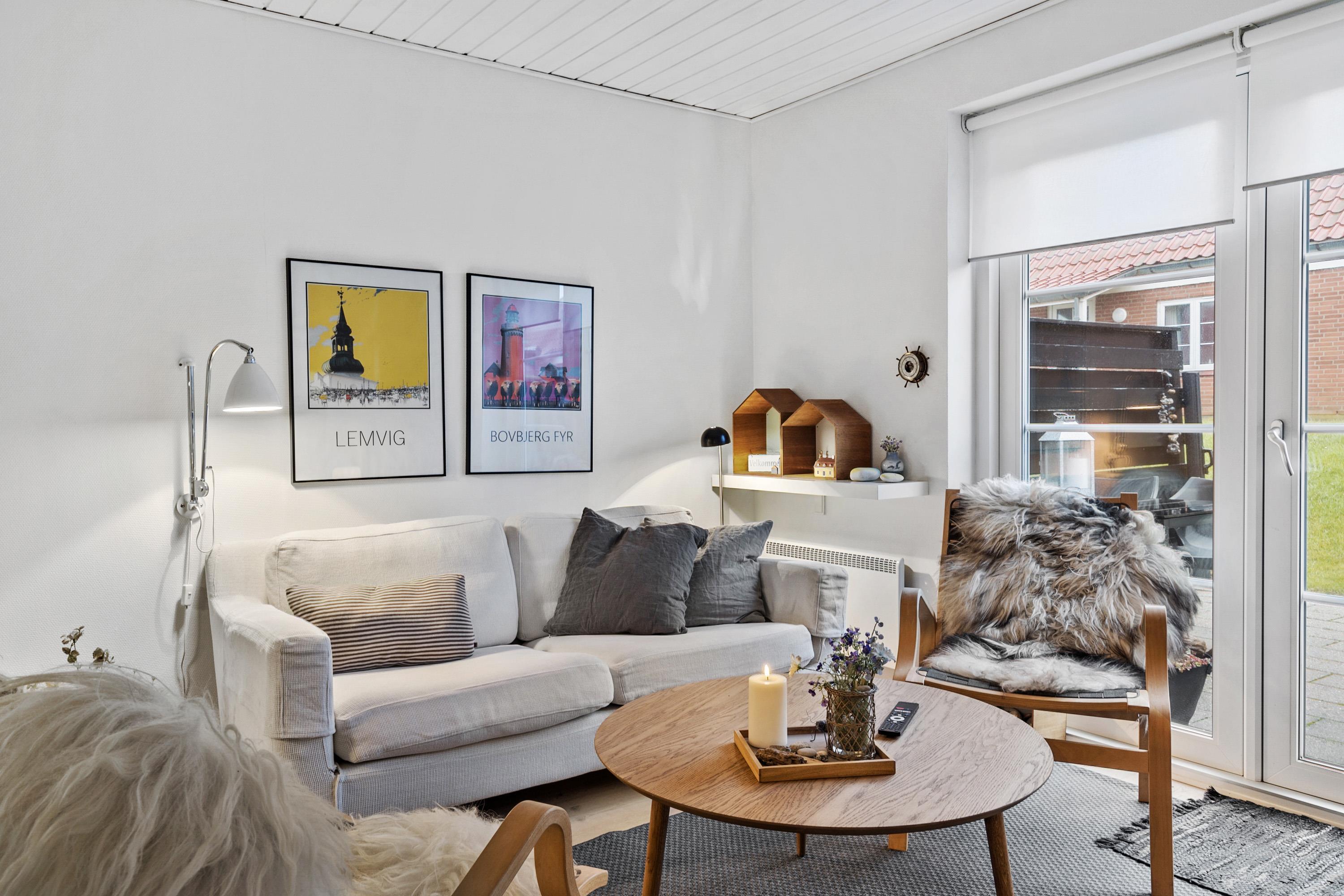 Vom Wohnzimmer aus gelangt man auf eine Terrasse mit Gartenmöbeln, von der aus man einen schönen Blick auf die Umgebung genießen kann. Das Reihenhaus hat eine fantastische Lage in der Nähe des Bovbjerg Leuchtturms, des Jens-Søndergaard-Museums und ist nur 300 Meter von der beeindruckenden Bovbjerg Steilküste an der Nordsee entfernt.