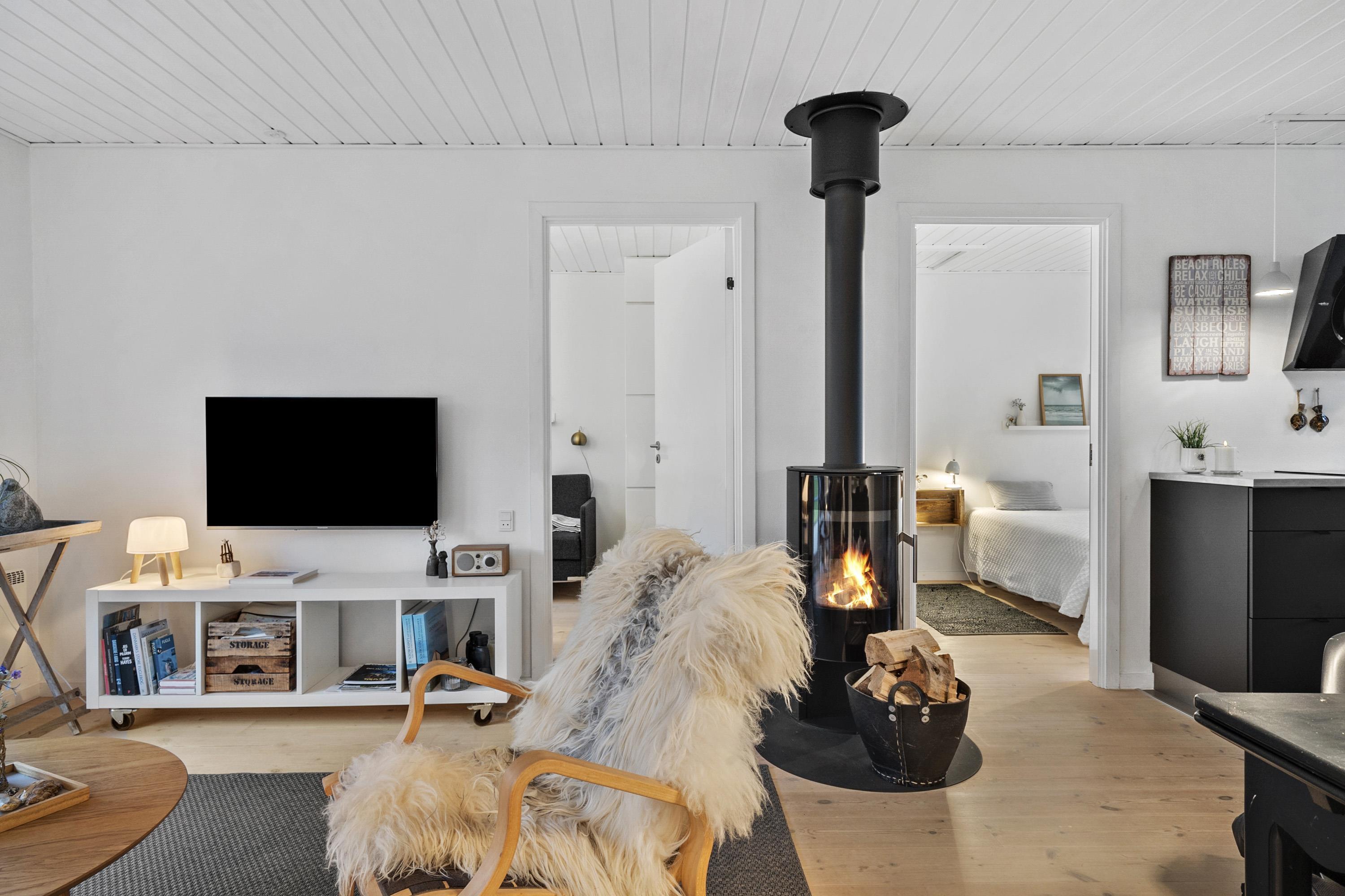 Praktisch eingerichtet mit zwei Schlafzimmern (1DS, 1DS) sowie einem kombinierten Wohn- und Küchenbereich. Das Wohnzimmer ist gemütlich möbliert und verfügt über ein großes Fenster, das für viel Tageslicht sorgt. Zudem gibt es einen Fernseher mit dänischen und skandinavischen Sendern, Chromecast, einen DVD-Player sowie einen stimmungsvollen Kaminofen.