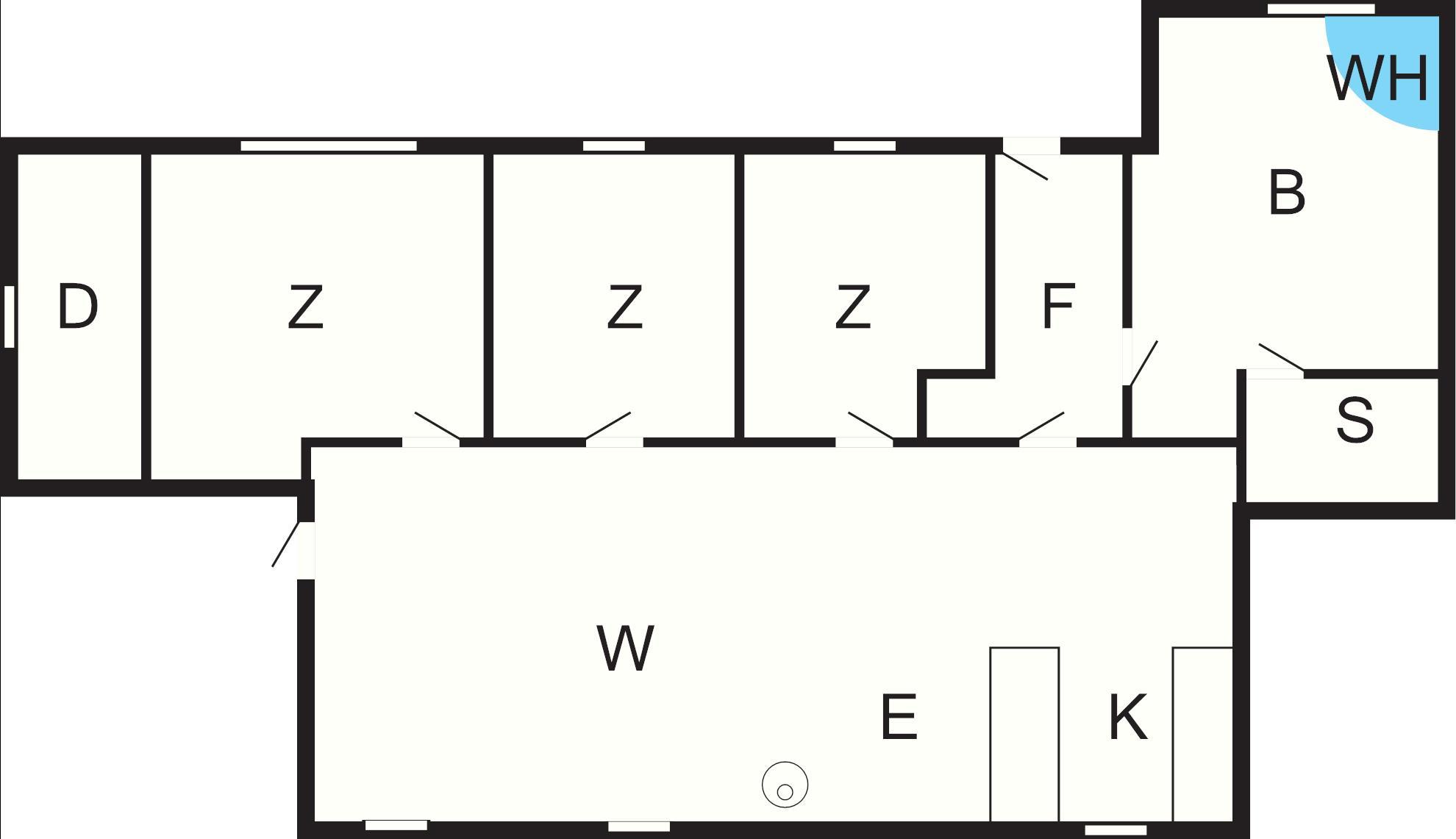 Bad: Waschm, Trockner, WC, Waschb., Außendusche, Dusche, Fußbodenheiz.