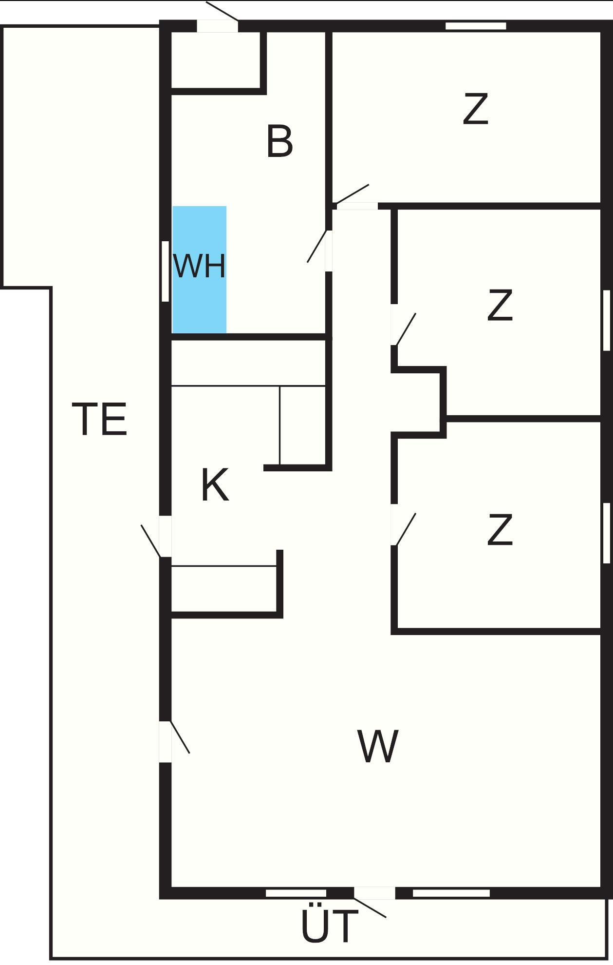 Bad: WC, Waschb., Dusche, Fußbodenheiz.