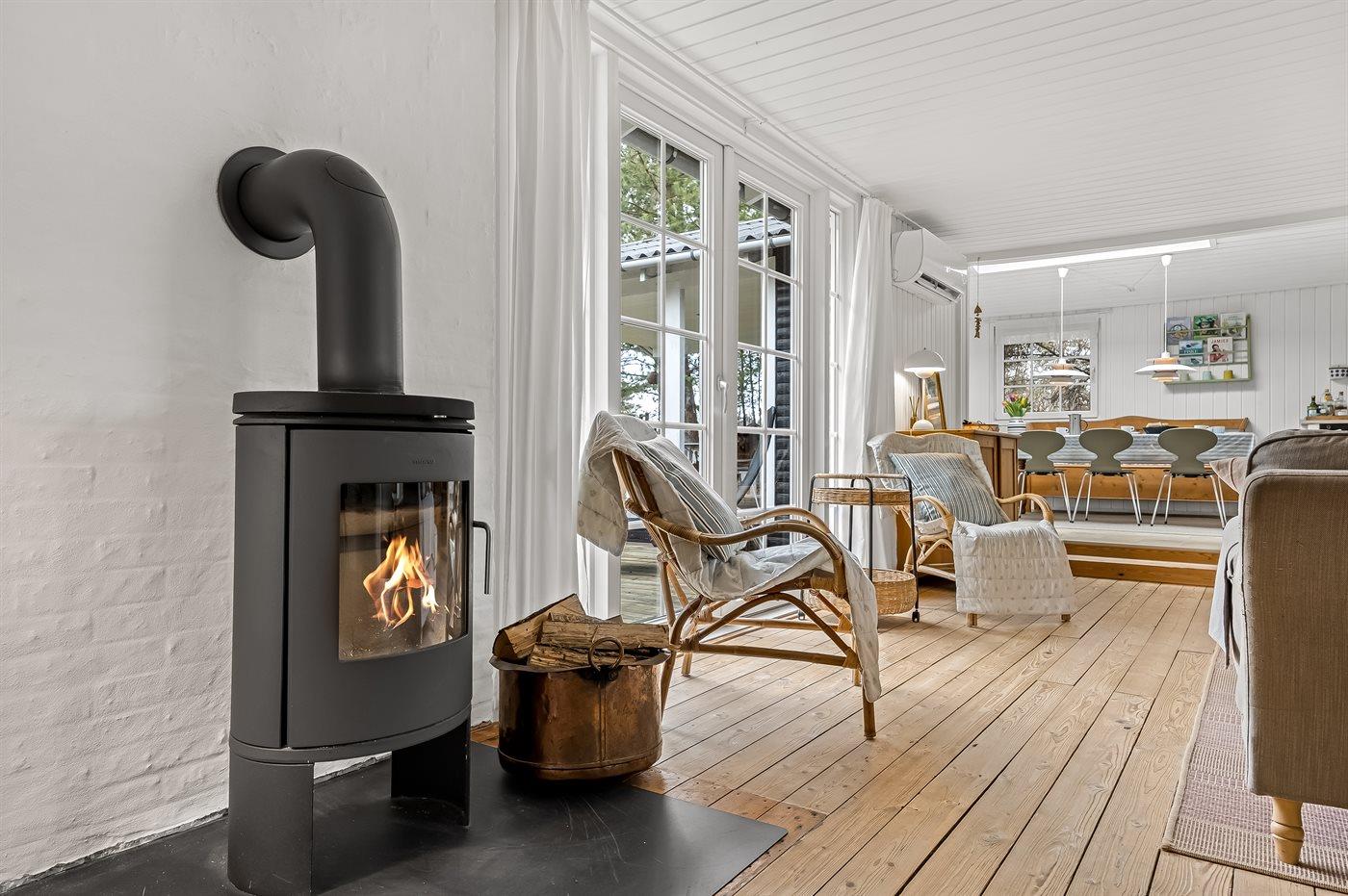 Herrliche Natur mit Möglichkeiten für Spaziergänge, auch mit Hund. Nur eine kurze Autofahrt entfernt liegen Skagen oder Frederikshavn, von wo aus Fähren nach Læsø und Schweden verkehren. Das Ferienhaus eignet sich sowohl für Familien als auch für Paare.