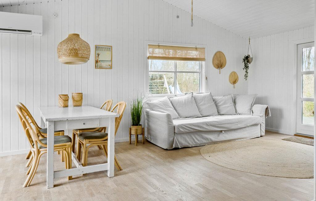 Willkommen in Ihrem hellen und geschmackvoll eingerichteten Ferienhaus in Bredfjed. Der offene Wohnraum mit integrierter Küche lädt Sie zu gemeinsamen Kochabenden und entspannten Stunden ein. Das stilvolle Interieur sorgt für eine behagliche Atmosphäre, während die große Holzterrasse ideal ist, um die frische Luft zu genießen. Im weitläufigen Garten können Ihre Kinder unbeschwert spielen, während Sie es sich mit einem Buch gemütlich machen. Ein kleines Nebengebäude bietet Ihnen zusätzlichen Platz für Gäste oder ruhige Rückzugsmöglichkeiten.