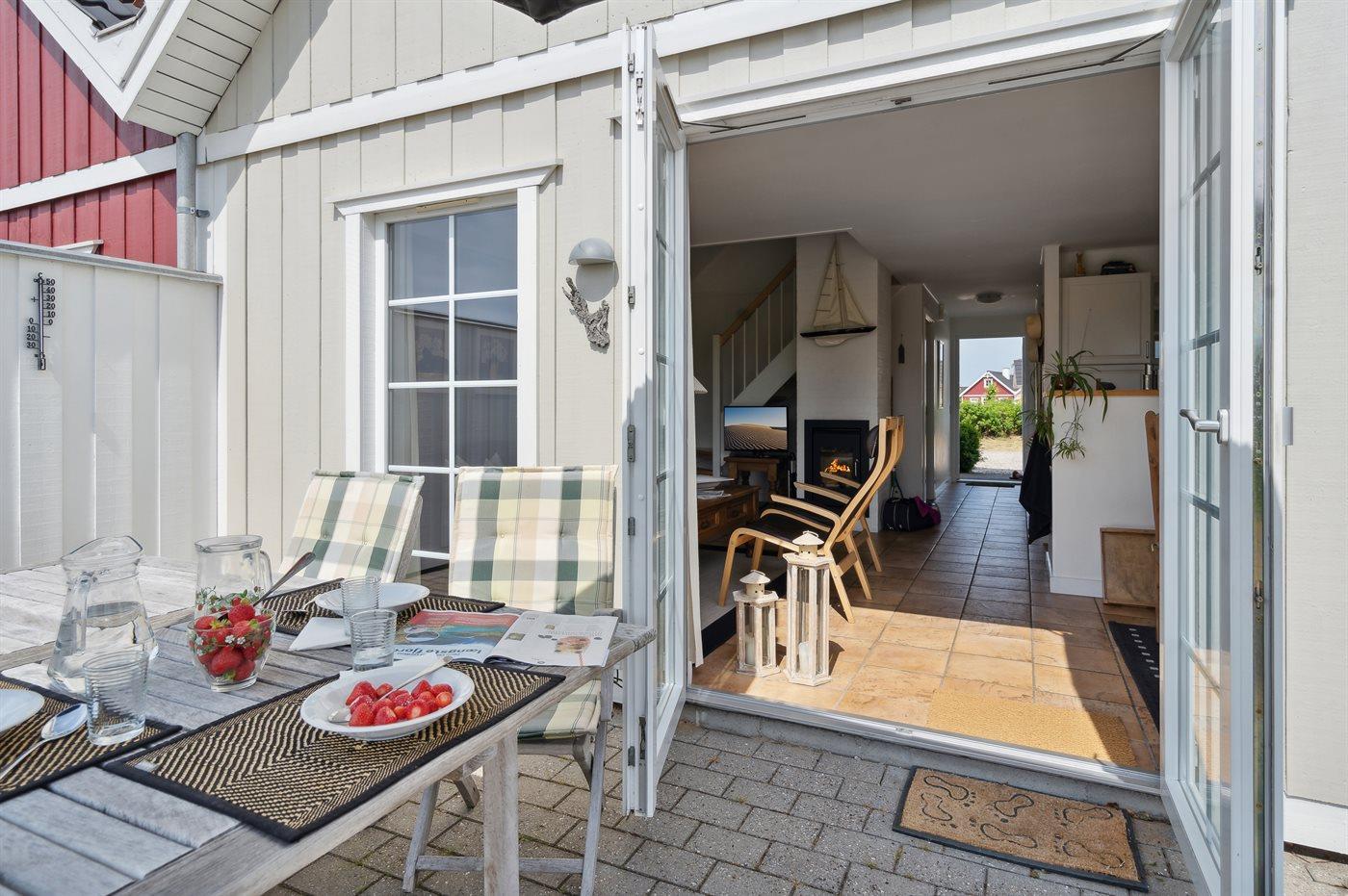 Die Ferienunterkunft liegt auf einem 300 m² großen Gartengrundstück. Die Entfernung zum Meer beträgt 300 m. Es gibt einen Badesteg in der Nähe. Die nächste Einkaufsmöglichkeit liegt 1000 m entfernt. Es steht ein 30 m² Terrassenareal zur Verfügung.Balkon im Obergeschoss. Geräteraum. Es stehen zwei Grill zur Verfügung (einer für Gaspatrone und einer für Kohle). Parkplatz auf dem Grundstück.