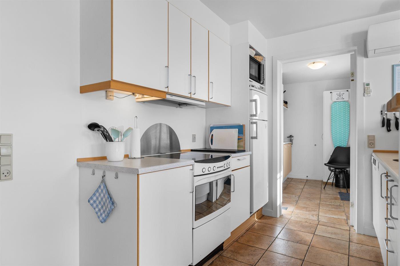 Die Küche ist mit Kühlschrank ausgestattet. Außerdem gibt es 4 Induktions-Kochzonen, Umluftofen, Mikrowelle sowie Geschirrspüler.
