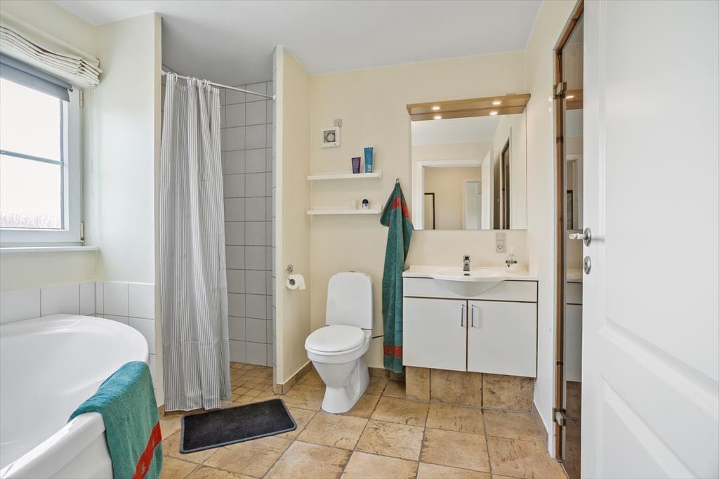 Die kleinen Ferienhausgebiete Bro Strand und Varbjerg Strand liegen direkt nebeneinander.Sie liegen zwischen Middelfart und Bogense. In Bro Strand führt eine Treppe zum Badestrand mit Badesteg hinunter. In Varbjerg gibt es einen kleinen Yachthafen und einen schönen, kinderfreundlichen Sandstrand. Der Ort Brenderup liegt nur 3km vom Gebiet mit Einkaufsladen, Pizzeria und einem Bäcker. Die Stadt Middelfart liegt 15 km vom Gebiet entfernt mit einer schönen Fußgängerzone, Restaurants und einer restaurierten Hafenfront. 30 Autominuten vom Gebiet entfernt liegt Odense, die größte Stadt auf Fünen. Zu Odenses großen Attraktionen zählen u.a. der Zoo, das Hans Christian Andersen-Haus und viele interessante Museen. Odense verfügt über ein kilometerlanges Netz an Fußgängerzonen mit vielen Geschäften, Cafés und Restaurants. Von der Innenstadt aus kann man eine idyllische Bootsfahrt auf dem Fluss Odense Å mitmachen.