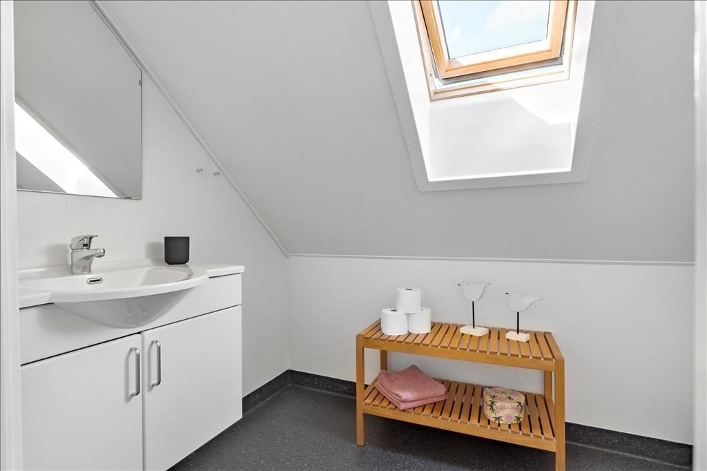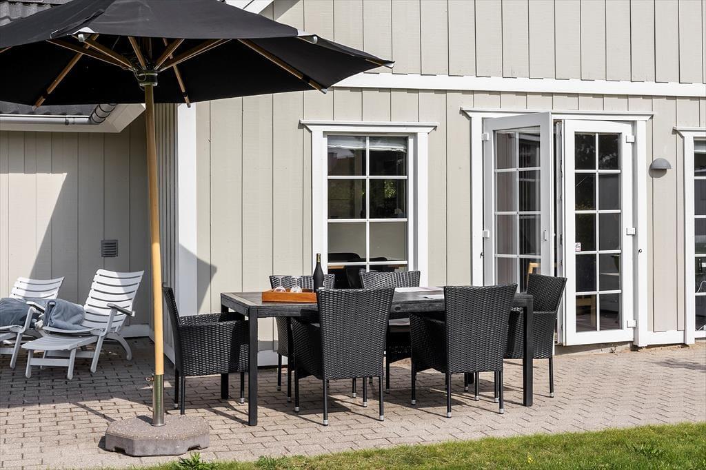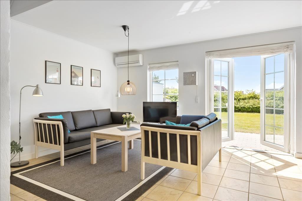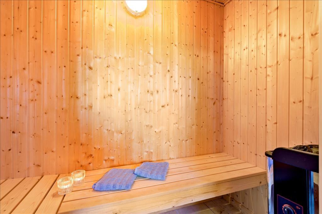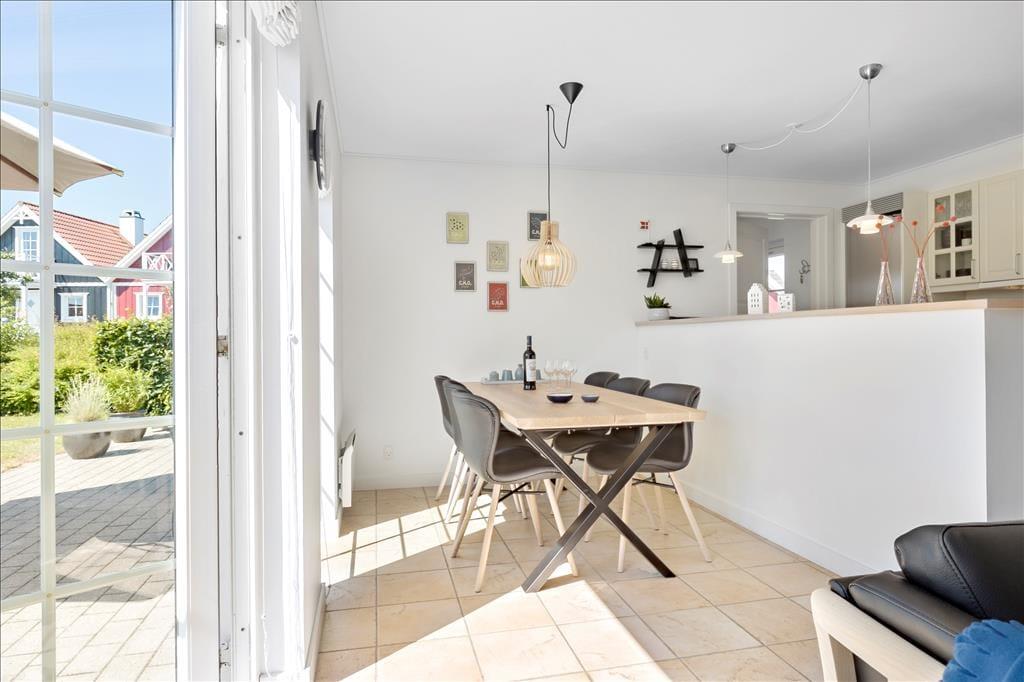 Schönes, zweistöckiges Reihenhaus mit Whirlpool und Sauna am Rande der Ferienhaussiedlung Bro Strand gelegen. Das moderne Holzhaus ist geschmackvoll im skandinavischen Stil eingerichtet und verfügt über ein gemütliches Wohnzimmer mit eingemauertem Kaminofen, moderne, zum Wohnzimmer hin offene Küche mit Bluetooth Lautsprecher, 1 Schlafraum, Badezimmer mit Whirlpool und Sauna sowie Hauswirtschaftsraum mit Waschmaschine. Im 1. Stock befinden sich 2 weitere Schlafräume sowie ein Gäste-WC. Meerblick vom 1. Stock aus. Vom Wohnzimmer aus kann man die Terrasse und die gemeinschaftlich genutzte Freifläche betreten.