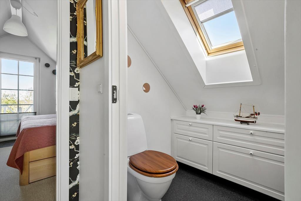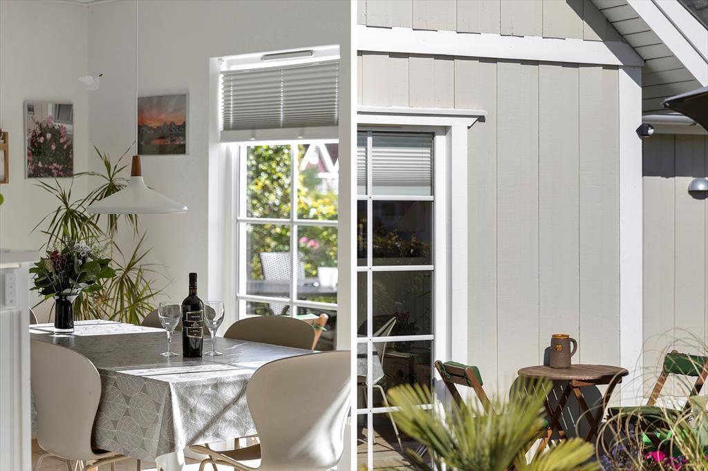 Das Haus erstreckt sich über zwei Etagen und verfügt über 3 Schlafzimmer, ideal für Familien oder Freunde. Ein Badezimmer mit Spa und Sauna sorgt für Entspannung nach einem Tag voller Strand- und Outdoor-Aktivitäten. Im Obergeschoss befindet sich zusätzlich eine praktische Gästoilette. Die offene Küche und der Essbereich schaffen eine helle, freundliche Atmosphäre für gemeinsame Stunden.