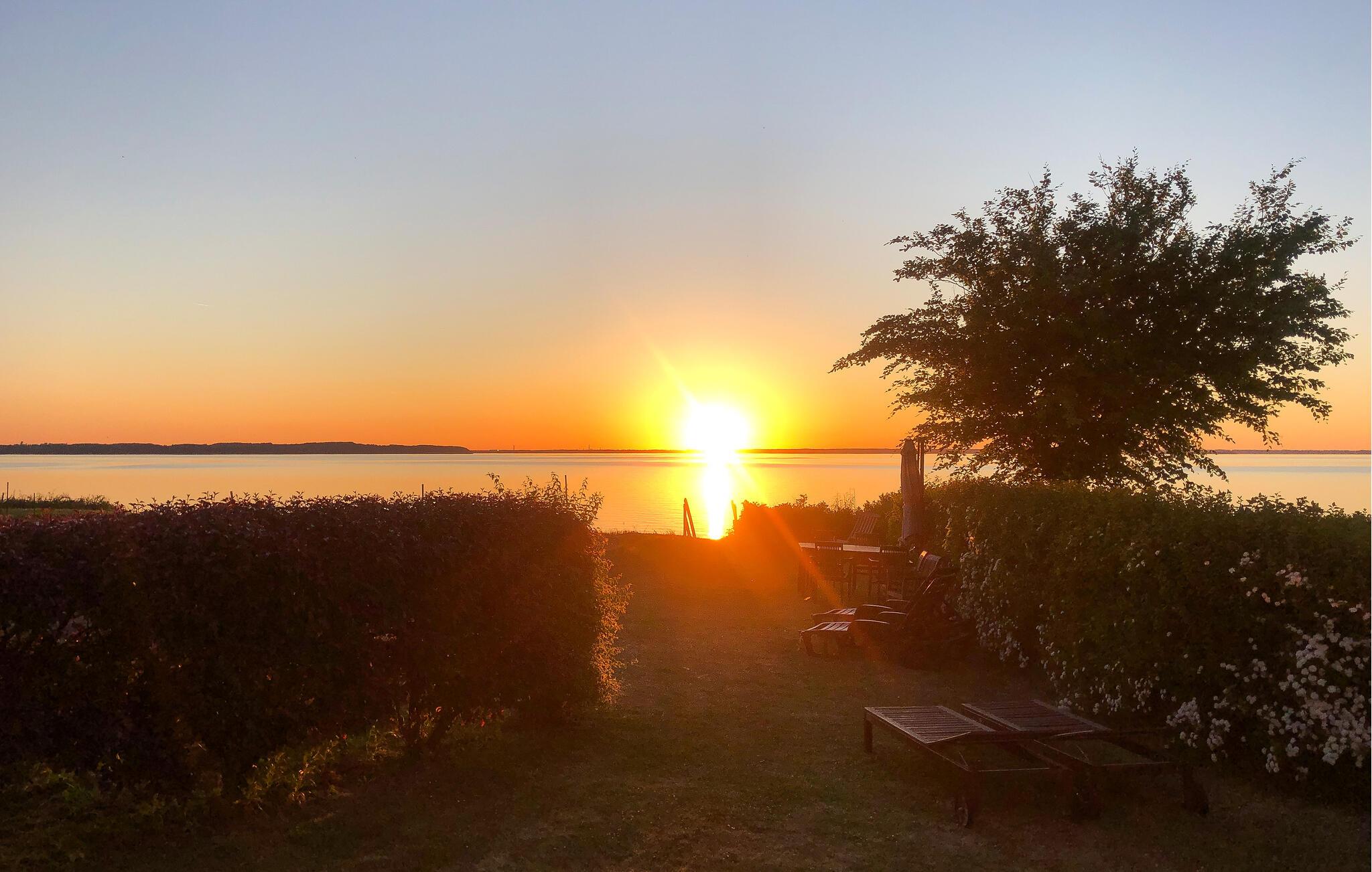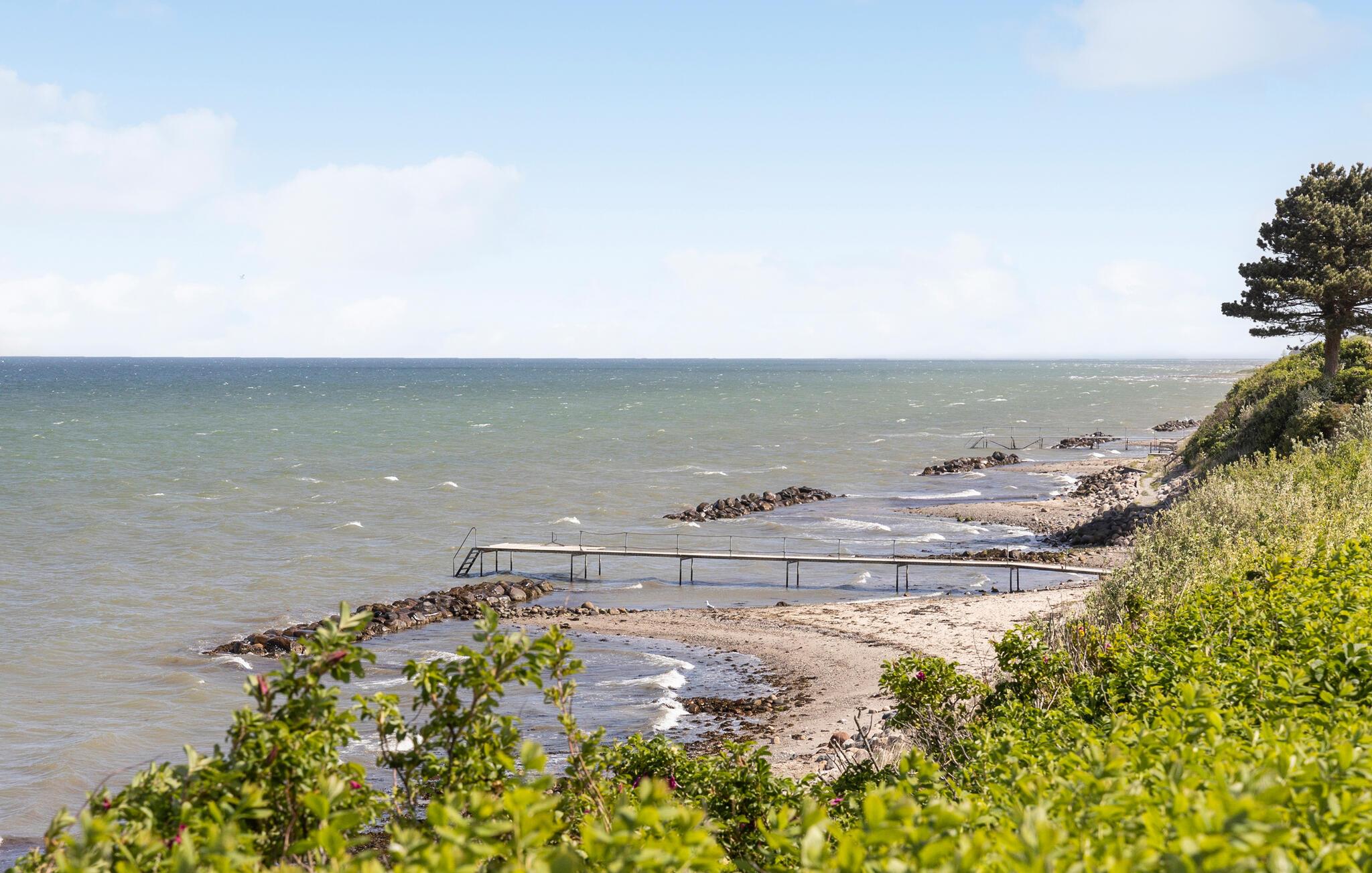 Ihr Grundstück grenzt direkt ans Wasser, sodass Sie auch beim Entspannen auf der Liege oder bei sonnigen Mahlzeiten im Freien den tollen Blick auf Båring Vig auf sich wirken lassen können. Spazieren Sie ein paar Schritte zum Strand und tauchen Sie die Füße in den warmen Sand, bevor Sie abends den Grill entfachen.