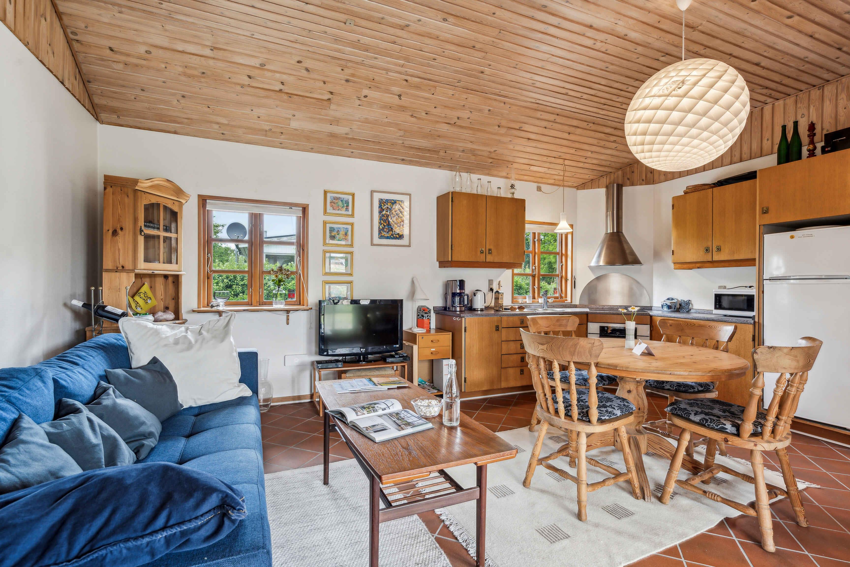Innenbereich Willkommen in einem charmanten älteren Sommerhaus, das vor Gemütlichkeit und Komfort nur so strotzt. Es bietet Platz für 5 Personen und ist somit ideal für einen Familienurlaub oder ein entspanntes Wochenende mit Freunden. Das Sommerhaus verfügt über eine schöne offene Küche, die mit dem Essbereich und einem gemütlichen Wohnzimmer verbunden ist. Im Wohnzimmer finden Sie einen Kaminofen, der eine warme und einladende Atmosphäre schafft, sowie ein bequemes Sofa, das auch als Schlafplatz genutzt werden kann. Das Badezimmer ist mit einer Dusche, einer Waschmaschine und einer angenehmen Fußbodenheizung für zusätzlichen Komfort ausgestattet. Das Haus verfügt über zwei Schlafzimmer: eines mit einem Doppelbett und das andere mit einem Schlafsofa, was flexible Schlafmöglichkeiten bietet. Außenbereich Das Sommerhaus liegt auf einem schönen kleine Naturgrundstück in der Nähe des kinderfreundlichen Strandes von Vemmingbund. Der Garten ist eine Oase der Biodiversität, in der der Erhalt und die Hervorhebung verschiedener Pflanzen im Vordergrund stehen. Im Ferienhaus finden Sie Informationen und Geschichten über die Pflanzen im Garten und deren Bedeutung. Der Garten bietet auch einen eleganten Pavillon und eine schöne überdachte Terrasse, die mit Gartenmöbeln und einem Grill ausgestattet ist, damit Sie das Leben im Freien in vollen Zügen genießen können. Lage Vemmingbund ist bekannt für seinen kinderfreundlichen Sandstrand und bietet Einrichtungen wie Kiosk, Spielplatz und Restaurant, was es zu einem idealen Urlaubsziel für Familien macht. Das Gebiet rund um den Flensburger Fjord ist reich an historischen und modernen Attraktionen. Im Norden von Als liegt Universe, ein spannender Themenpark voller Naturphänomene und Technik, der sowohl Kinder als auch Erwachsene fasziniert. Für Geschichtsinteressierte ist das Geschichtszentrum Dybbøl Banke ein Muss, wo Sie in das Drama und die Ereignisse des Krieges von 1864 eintauchen können. Sønderborg, die größte Stadt in der Region, bietet eine Reihe von Aktivitäten, darunter einen Besuch im Schloss Sønderborg, einen Spaziergang entlang der schönen Uferpromenade und Einkaufen in der charmanten Fußgängerzone. Dieses Sommerhaus ist der perfekte Ort für einen entspannten und bereichernden Urlaub, bei dem Natur und Kultur direkt vor der Tür liegen. Achtung: Wird nicht für gewerbliche Nutzung vermietet.