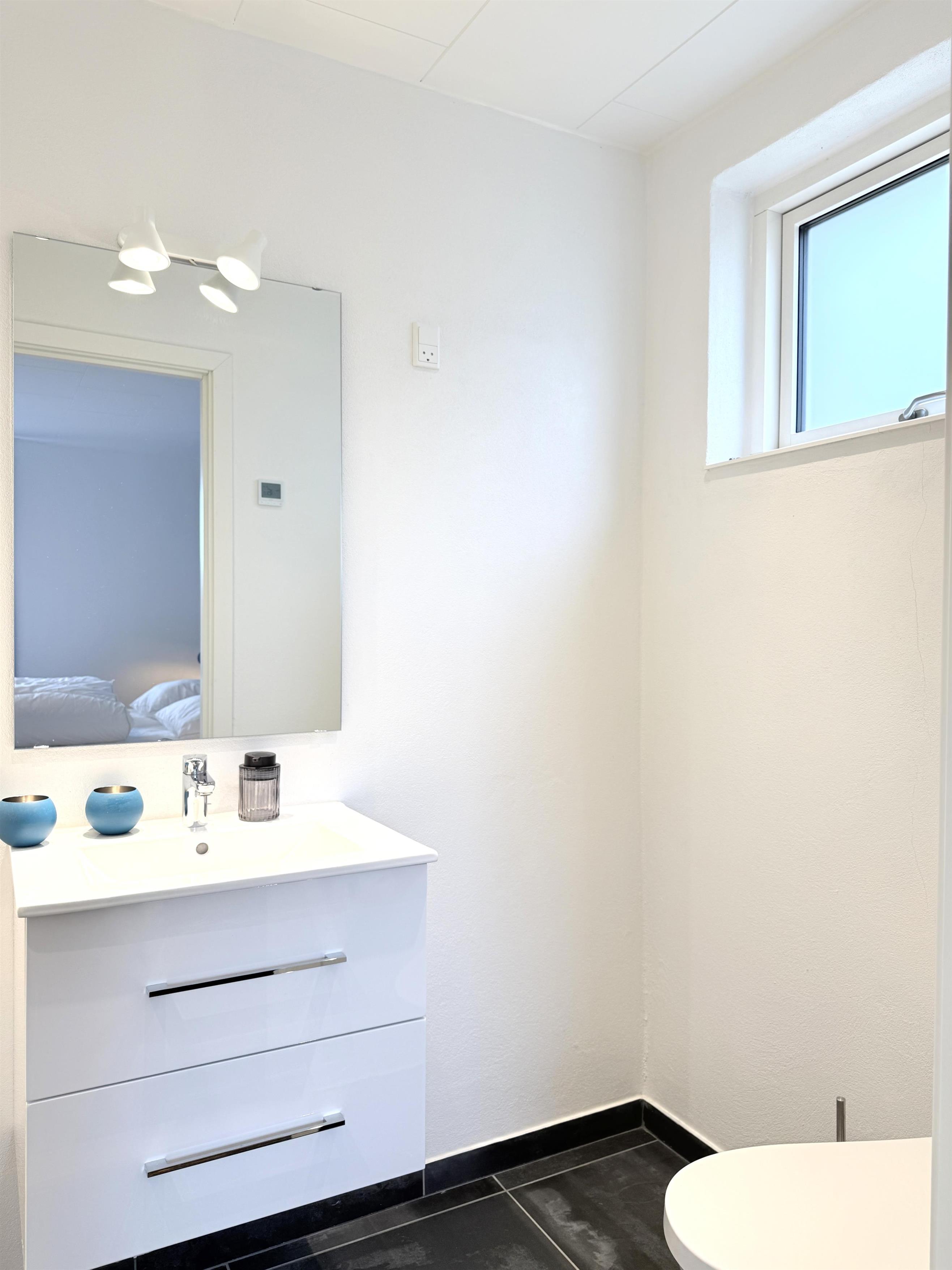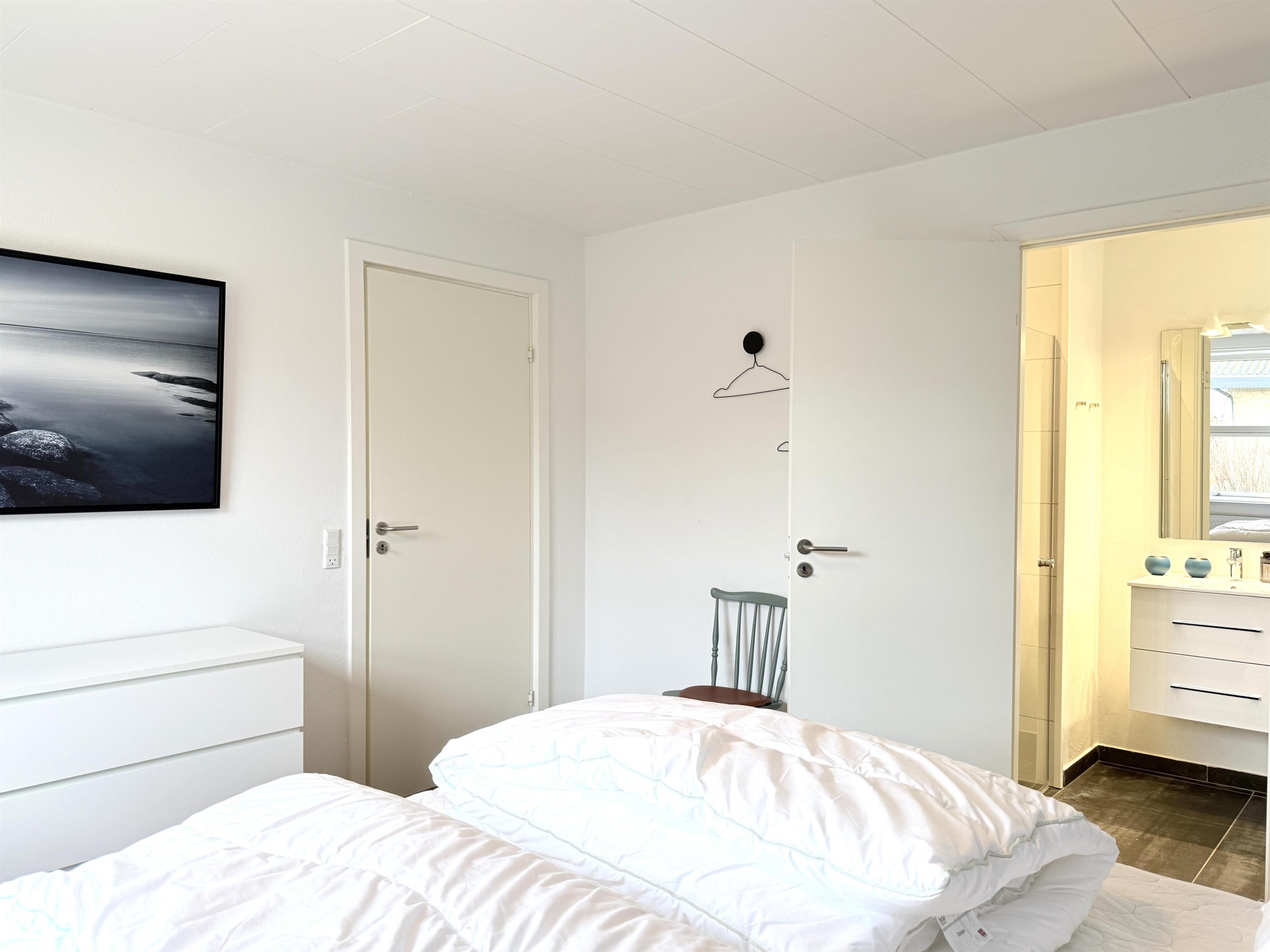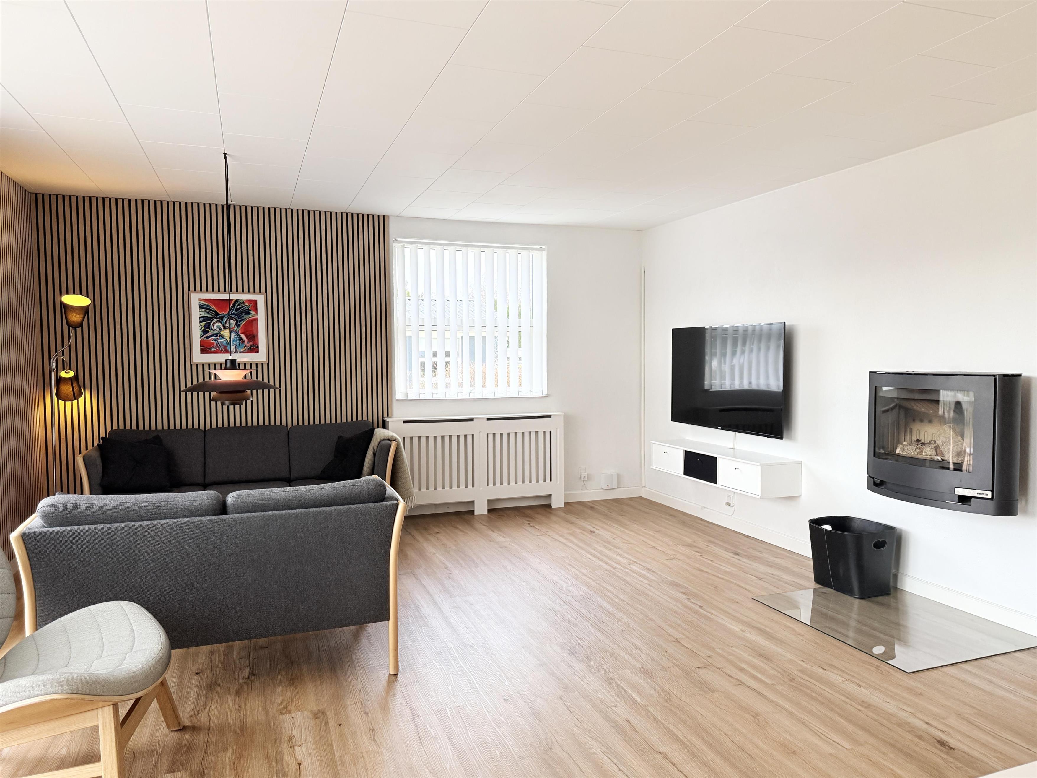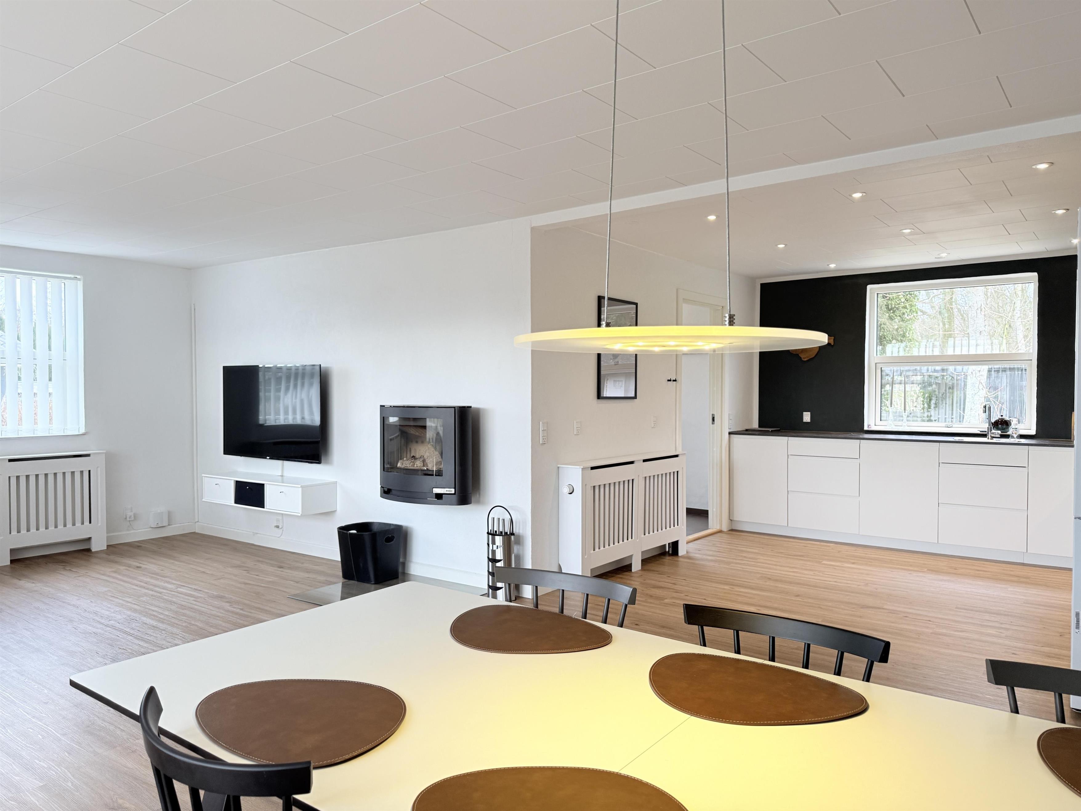 Das Haus verfügt über eine schöne, große Wohnküche mit einem gemütlichen Essbereich für die ganze Familie und ein helles, geräumiges Wohnzimmer mit komfortablen Möbeln und Fernseher. Es gibt drei komfortable Schlafzimmer mit Doppelbetten und Stauraum sowie zwei schöne, neue Badezimmer mit Dusche. Von einem Schlafzimmer aus hat man direkten Zugang zum Badezimmer. Außerdem gibt es einen praktischen Hauswirtschaftsraum mit Waschmaschine und Trockner. Die Terrasse ist mit Gartenmöbeln und Grill ausgestattet.