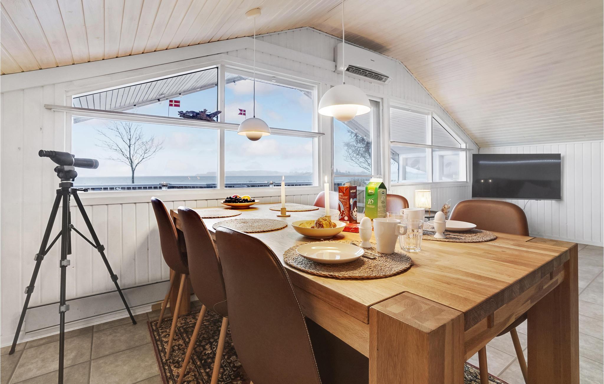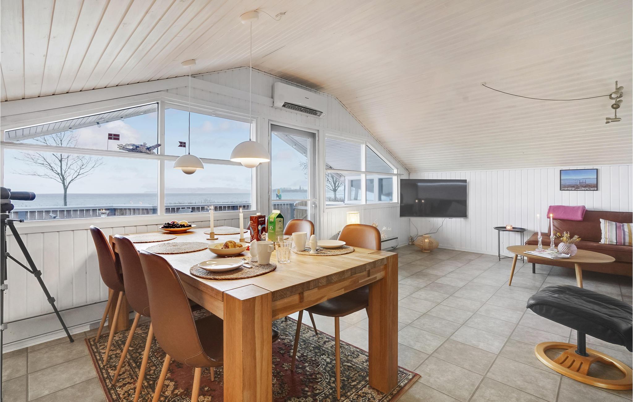 Mit einer phantastischen Lage am Diernæs Strand und mit schöner Panoramaaussicht auf den Kleinen Belt, haben Sie hier die Möglichkeit zu einem großartigen und unvergesslichen Urlaub. Freie Aussicht auf das Meer und den Strand haben Sie von der teilweise überdachten Terrasse. Zwischen Haus und Meer gibt es nicht sehr stark befahren Straße. Das Wohnzimmer des Hauses liegt so hoch, dass Sie auch von hier eine Aussicht auf das Meer haben. Die zwei Niveaus des Hauses sind über sechs Treppenstufen miteinander verbunden.