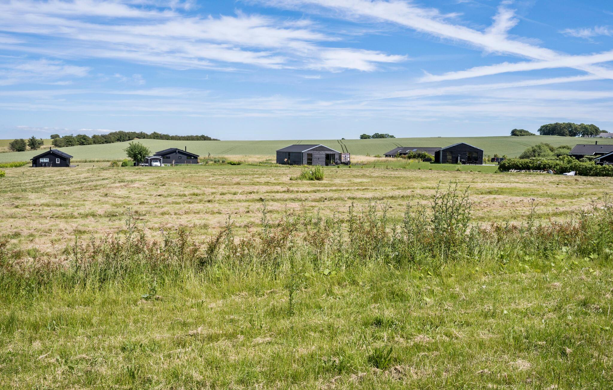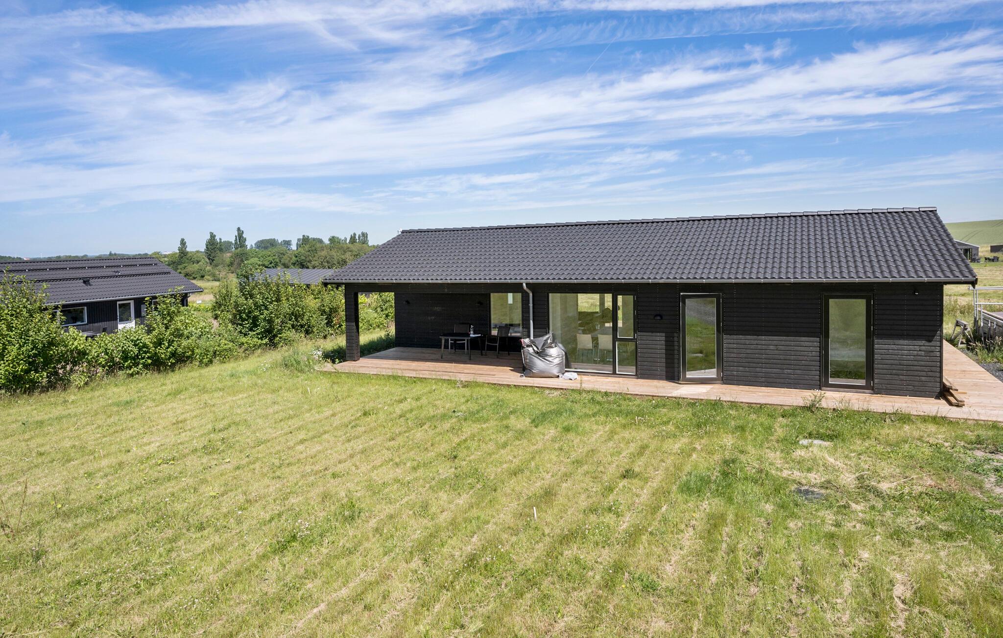 Modernes Ferienhaus mit herrlichem Blick auf Felder, Terrasse und vielfältigen Freizeitmöglichkeiten in Drøsselbjerg Strand.