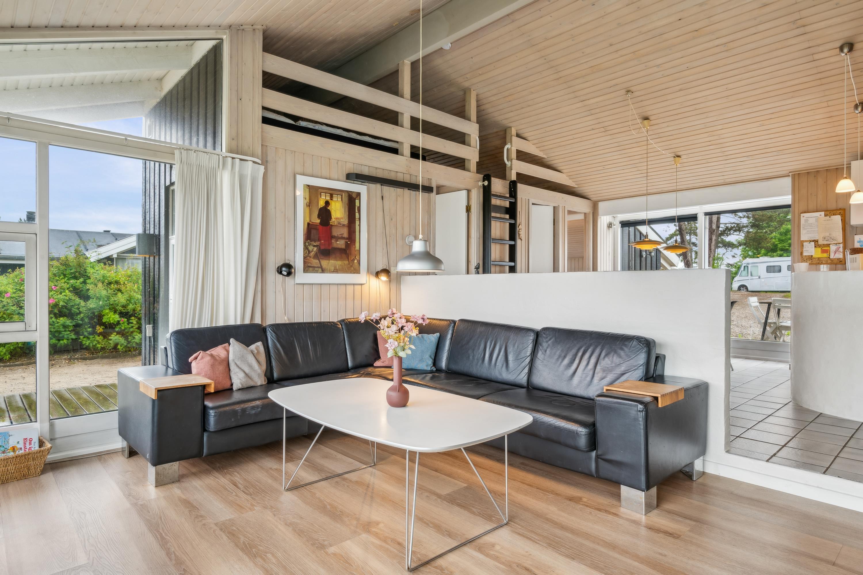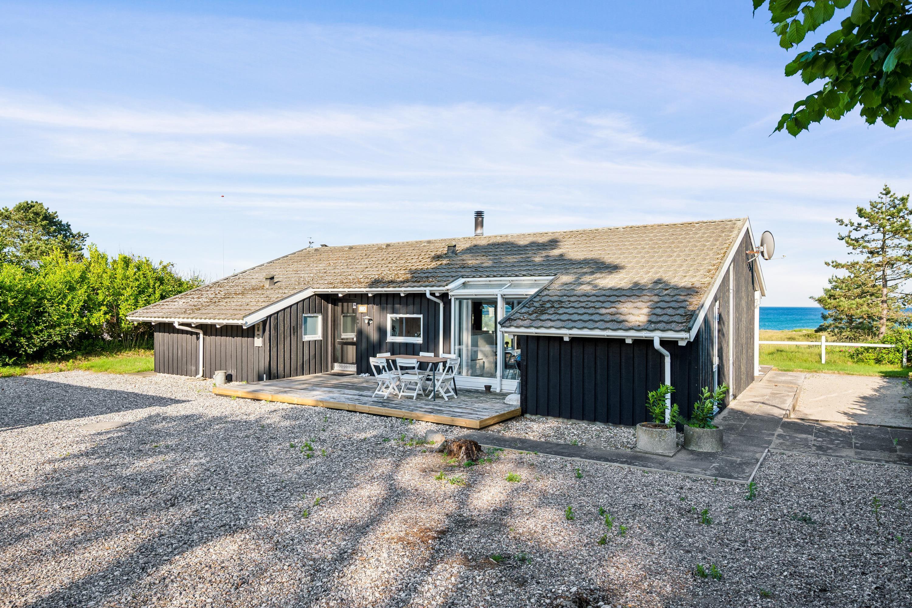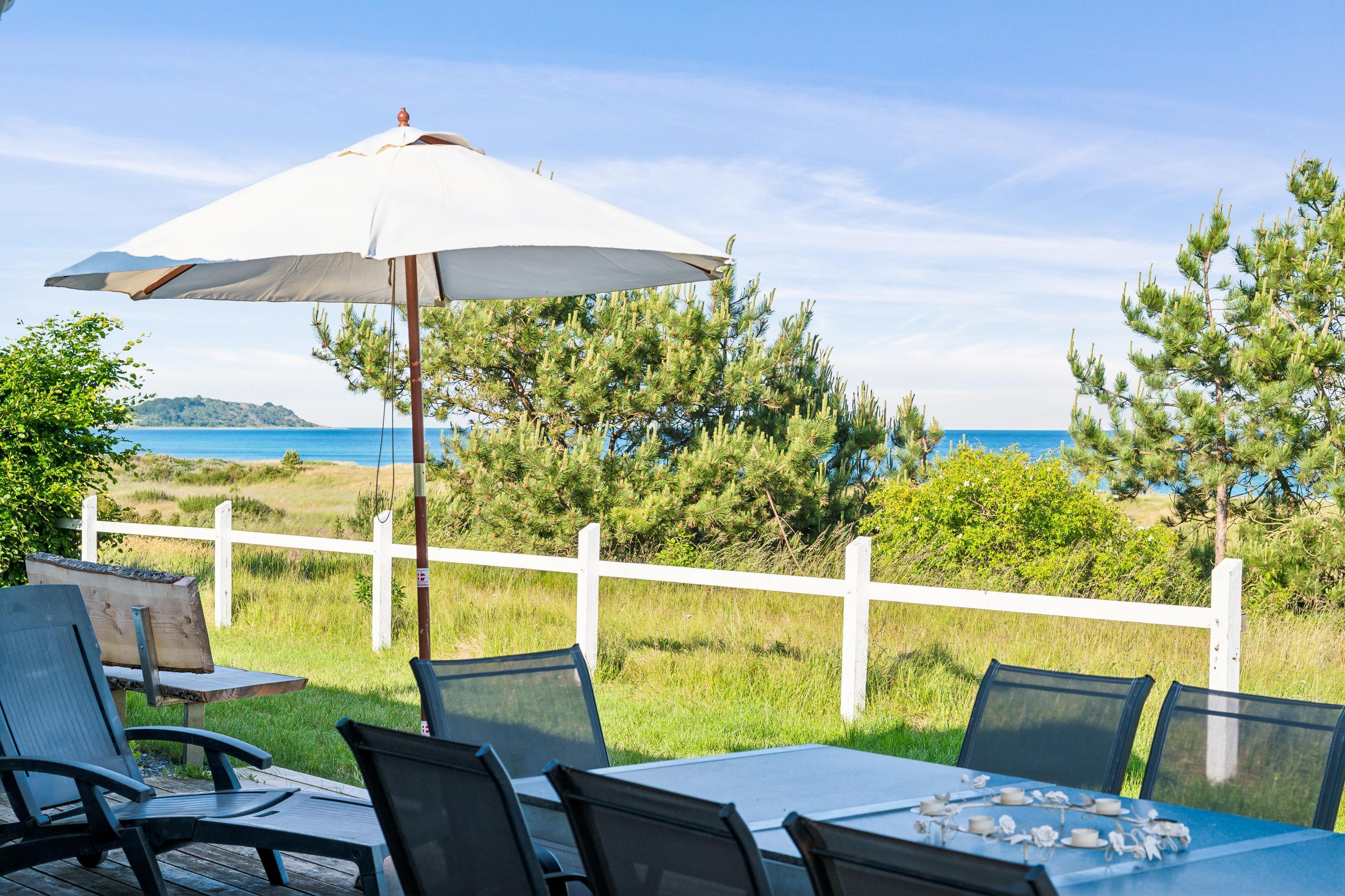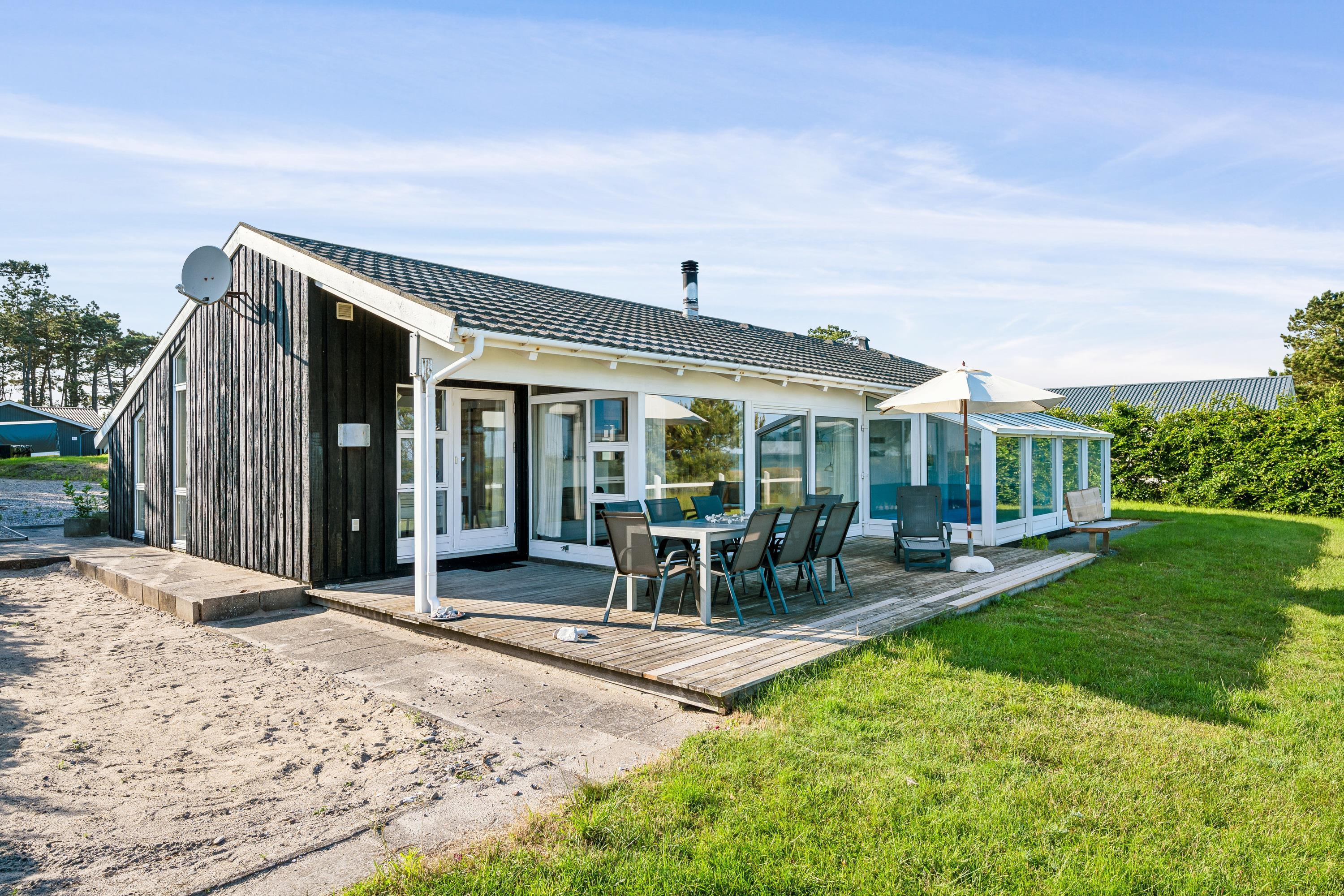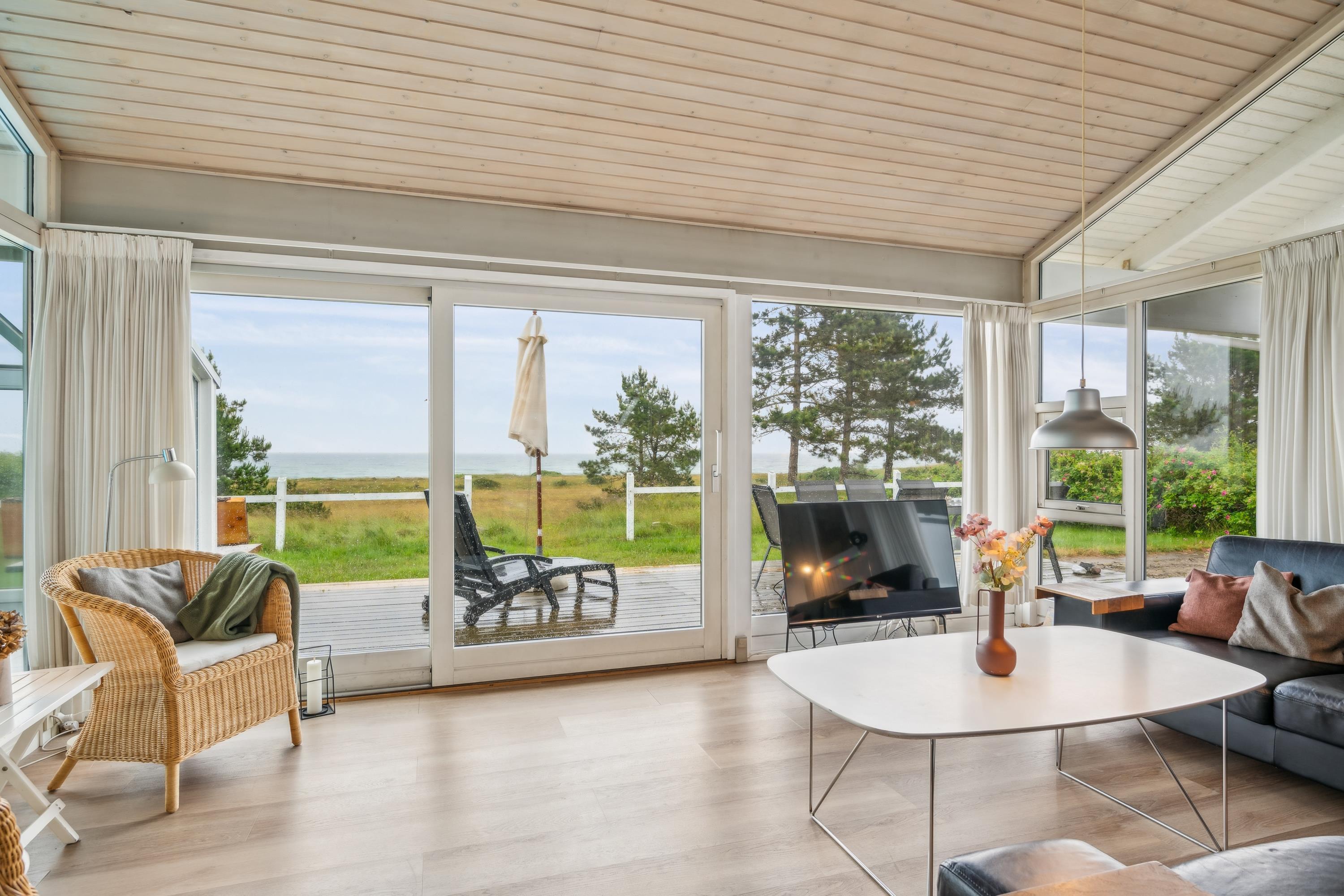 Erleben Sie ein herrliches Poolhaus am Dråby Strand mit Panoramablick auf Kattegat und Jernhatten, ideal für Erholung und Familien.
