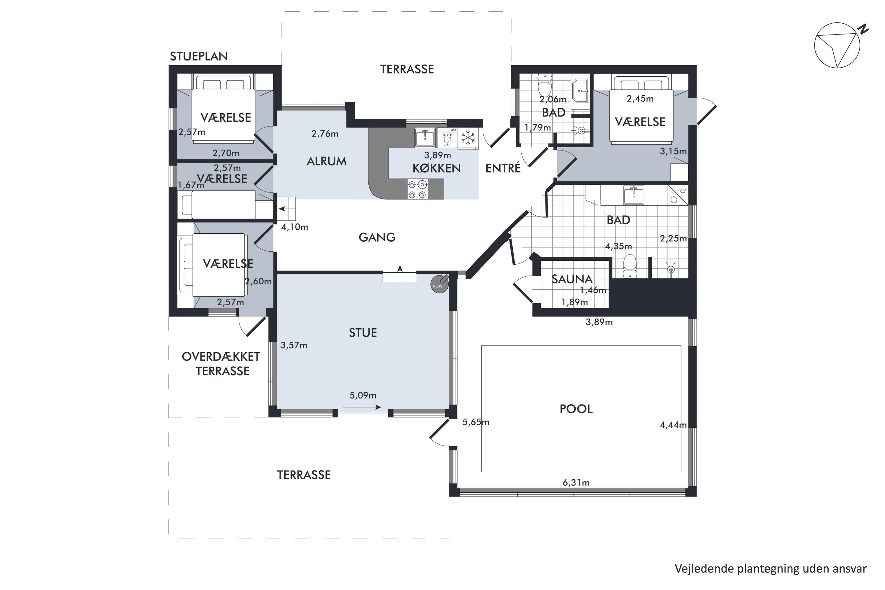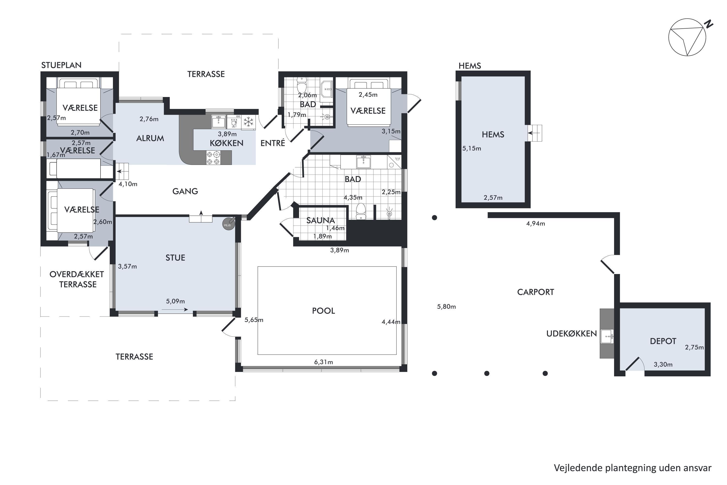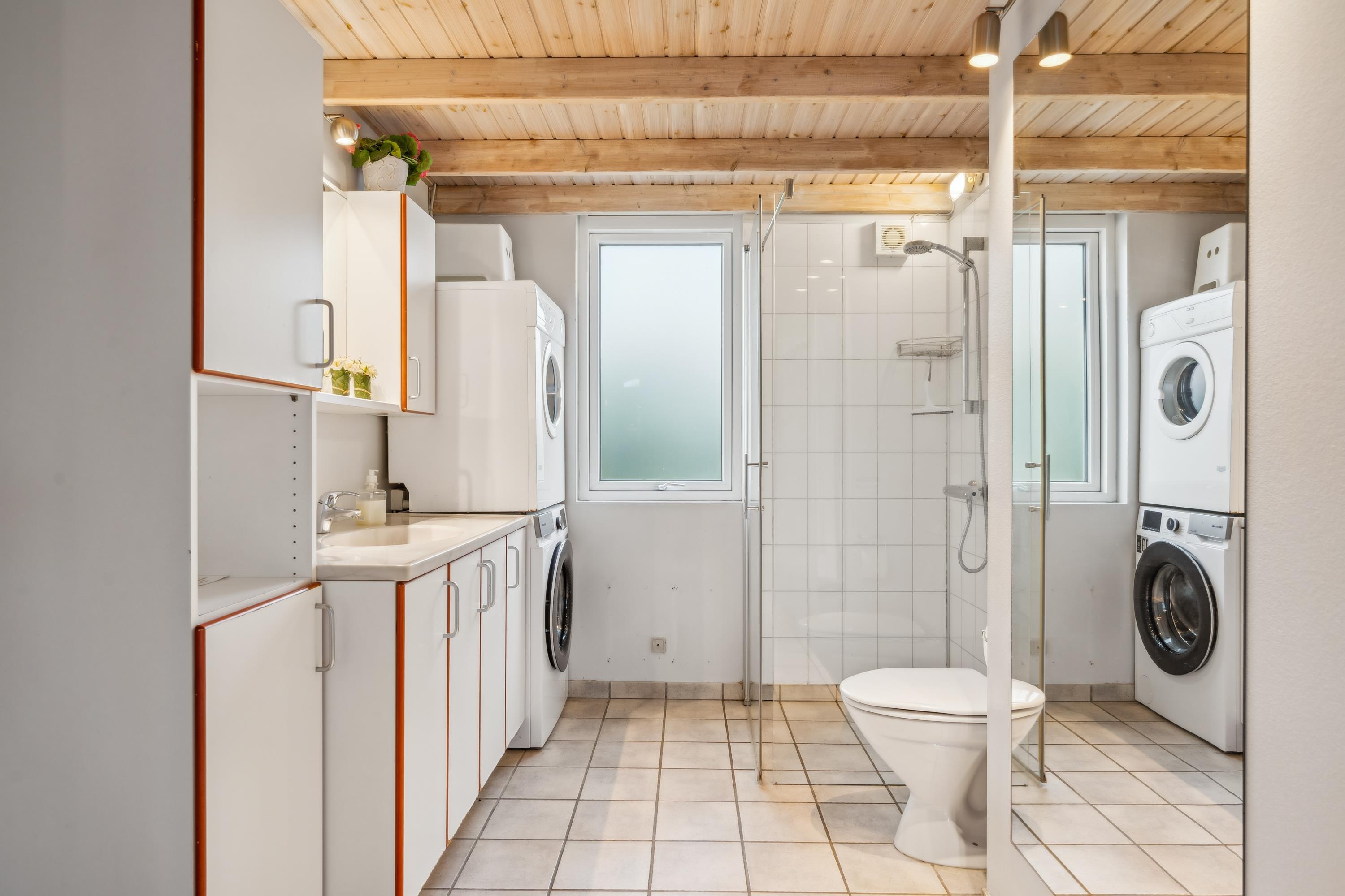 Auf einem großen Naturgrundstück am Dråby Strand finde Sie dieses schöne Poolhaus in 1. Reihe am Wasser mit Panoramablick auf das Kattegat und Jernhatten mit mehreren Terrassen (Ost und West) mit Gartenmöbeln, Grill und Feuerplatz. Gemütliches Wohnzimmer mit Holzofen, TV mit SAT-Anlage, Stereoanlage mit CD und DVD. Helle, moderne Küche mit Ceranfeld, Kühlschrank mit kleinem Gefrierfach, Stereoanlage mit CD und DVD. 2 Badezimmer mit Dusche und Fußbodenheizung. Außerdem Sauna, Waschmaschine und Trockner. Zentral im Haus finden Sie einen großen Poolraum (4,8 x 3,5 x 1,5 M – 15 Qm). Die Schlafplätze verteilen sich auf 4 Schlafzimmer: 3 mit Doppelbett, 1 mit Etagenbett sowie großes Obergeschoss mit 2 Schlafplätzen, die zum Wohnzimmer offen ist. Außenfischreinigungsplatz sowie extra Gefrierfach im Schuppen. Für die kleinen Feriengäste finden Sie Kinderbett, Kinderhochstuhl, Sandkasten und Schaukel. Außerdem Petanguebahn.