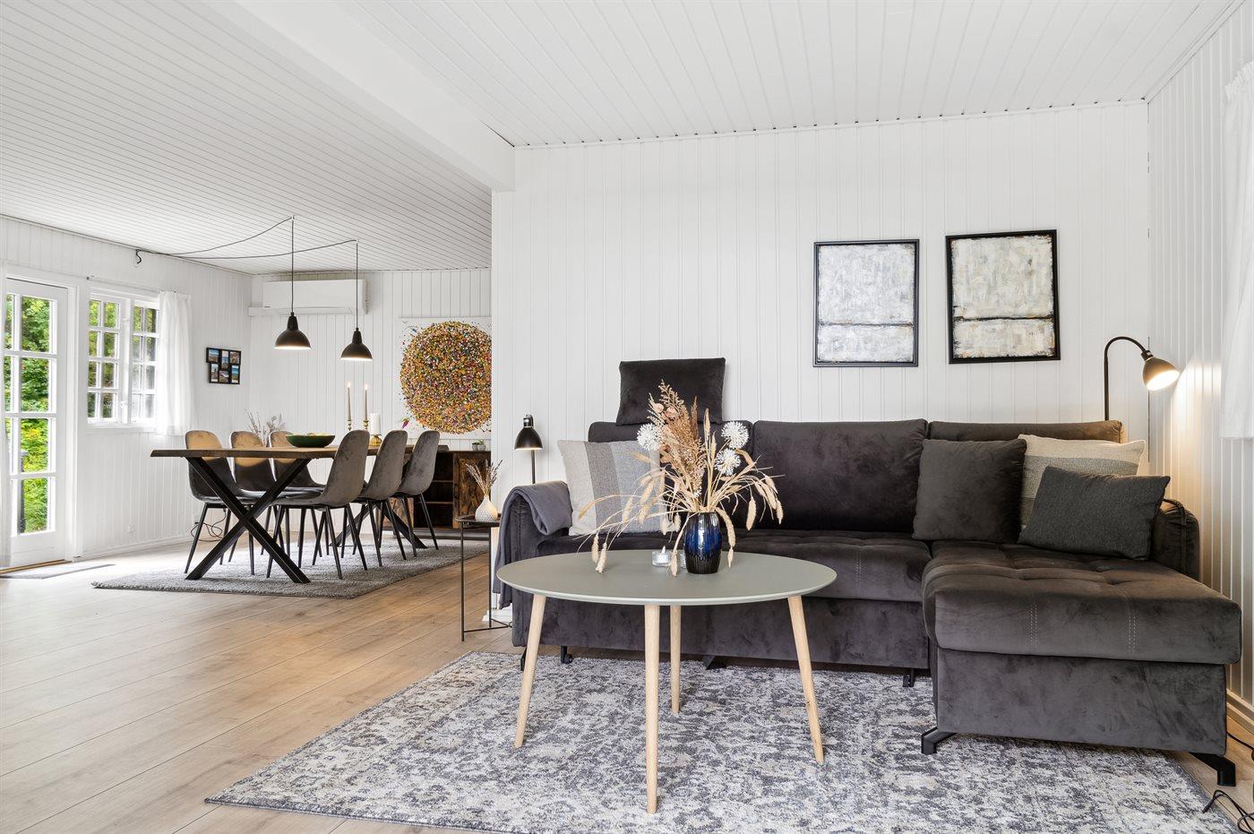 Frisch renoviertes Ferienhaus in Dråby mit Meerblick, Sauna und moderner Ausstattung nur 200 m vom Strand entfernt.