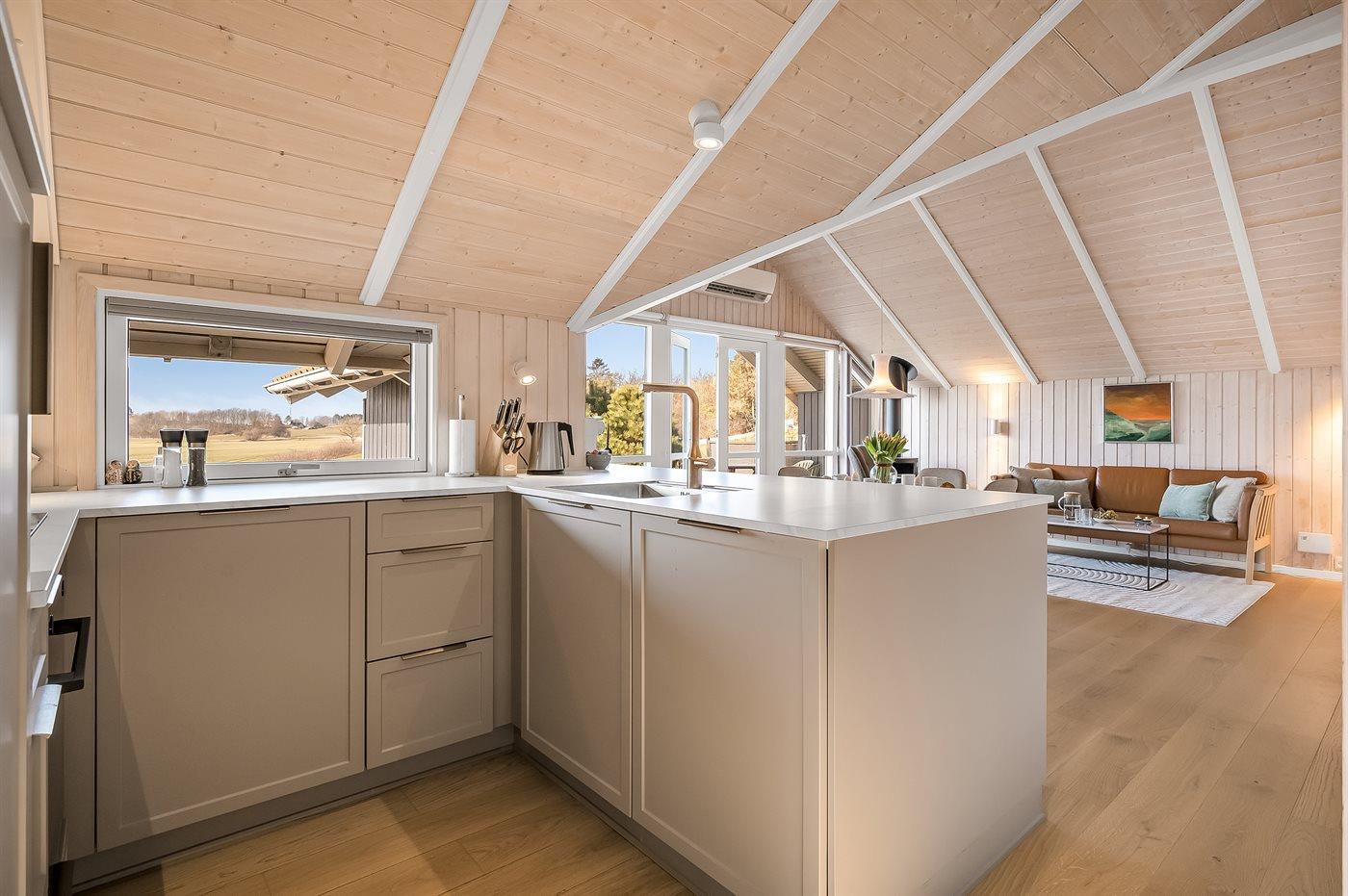 Gemütliches und modernisiertes Ferienhaus mit einer neueren Küche und Möbeln, die zur richtigen Atmosphäre und Gemütlichkeit beitragen.