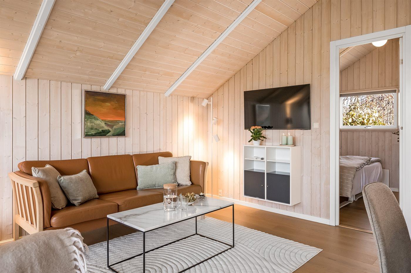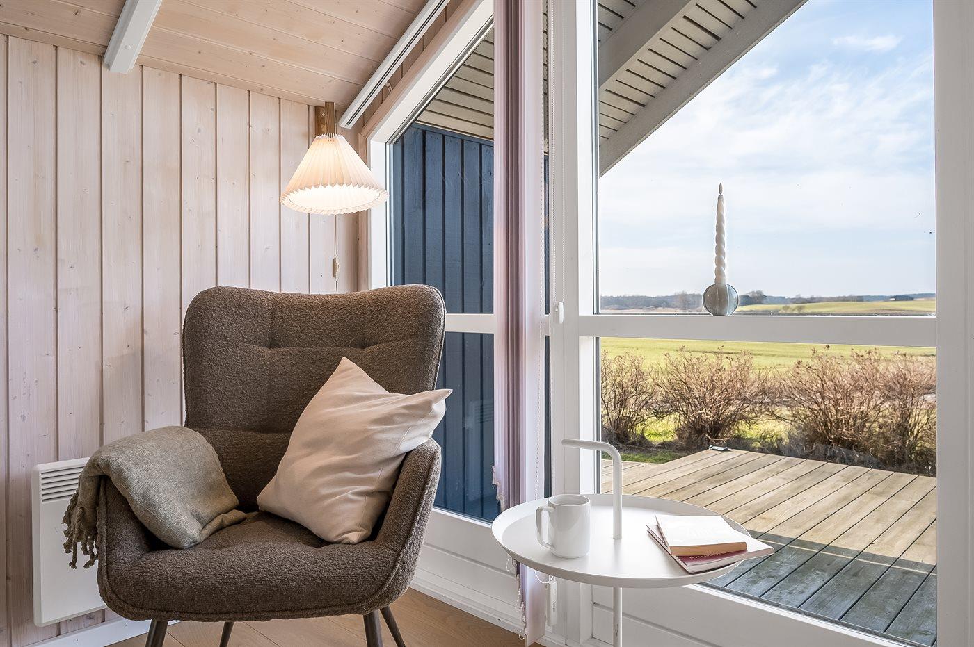 Modernisiertes Ferienhaus in Dråby, nahe dem Strand, mit Sauna, Kaminofen und moderner Ausstattung für entspannte Tage.