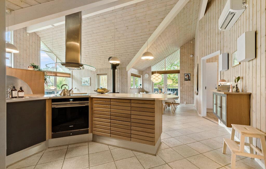Eine ruhige, naturschöne und zentrale Lage, mit gleichem Abstand zum Strand und nach Ebeltoft, besitzt dieses Ferienhaus, das zu einem erstklassigen Aufenthalt einlädt. Die gute Qualität, die moderne und praktische Einrichtung und die spannende Architektur auf versetzten Ebenen, die für viel Platz und Licht sorgt, sind an sich bereits ein Erlebnis. Im Ferienhaus gibt es eine Musikanlage mit Bluetooth, so dass Sie Ihre eigene Musik streamen können. In der Küche gibt ein Induktionskochfeld sowie einen Ofen mit Pizzafunktion und Thermometer. Der Hems ist eine gute Schlafstätte für Ihre Kinder. Erkunden Sie die Umgebung Ebeltofts mit den guten Einkaufsmöglichkeiten und netten Restaurants, die Mols-Gegend mit der einzigartigen Natur und Djurs Sommerland mit den vielen spannenden Attraktionen. Boeslmum hat einen sehr guten Badestrand.
