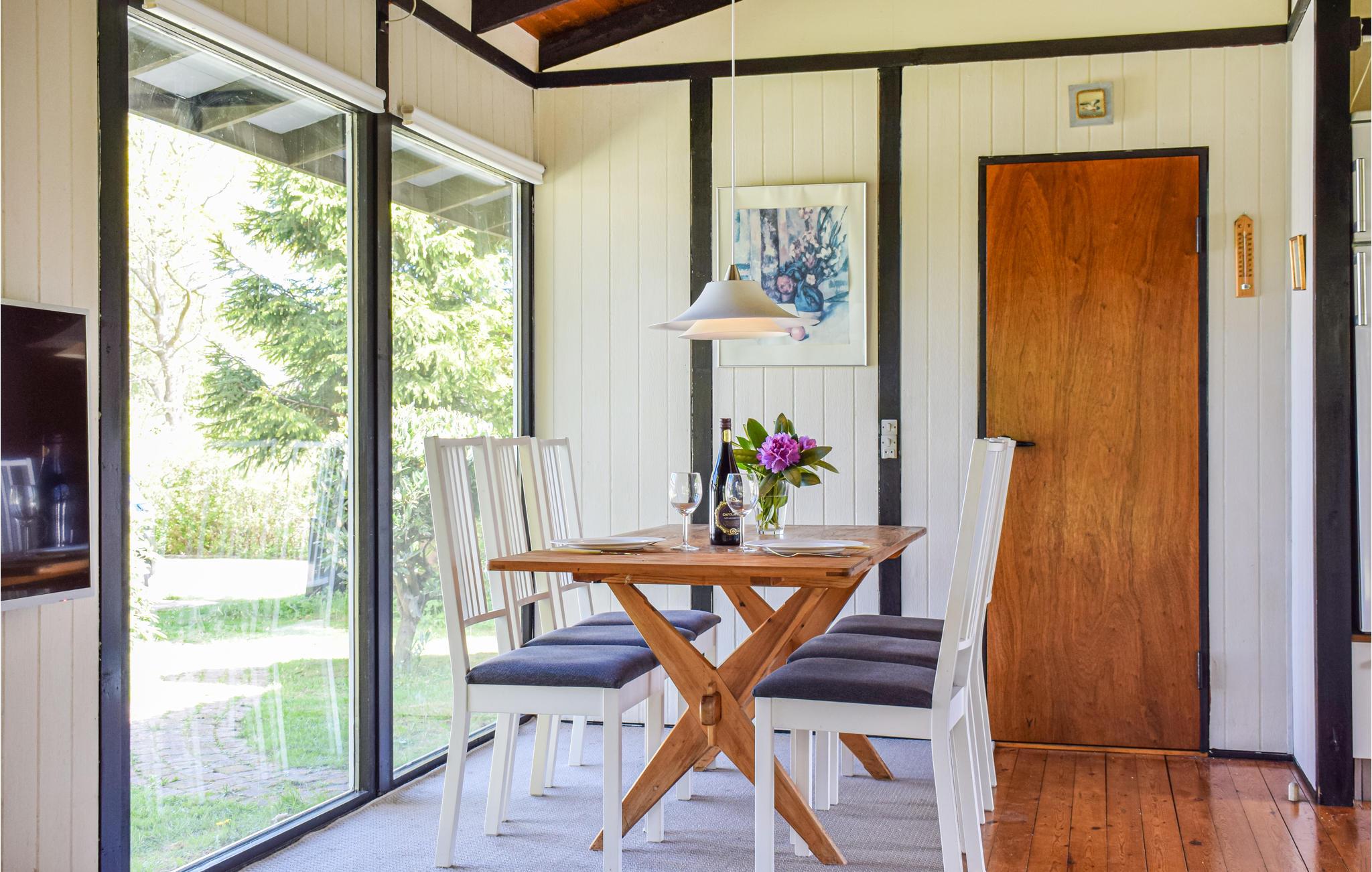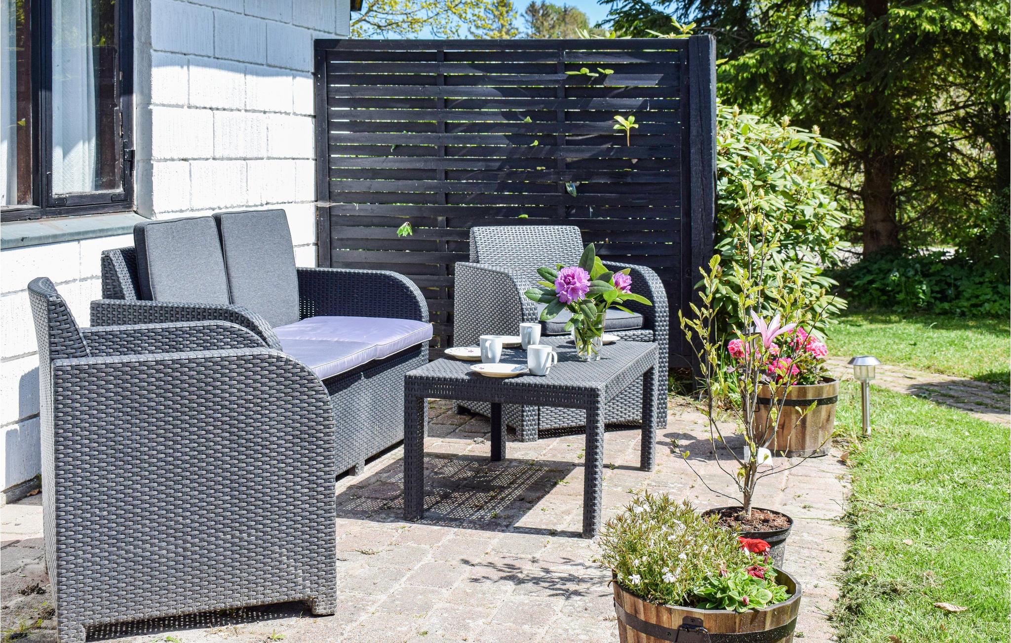 In diesem charmanten, klassisch, dänischen Ferienhaus können Sie gar nicht anders, als zu entschleunigen und der Urlaubsstimmung weit die Tür zu öffnen. Das Holzhaus ist von Bäumen und einem großen Garten umgeben, wo die Kinder in ungestörter Umgebung herrlich miteinander spielen können. Draußen steht Ihnen eine gemütliche überdachte Holzterrasse mit Gartenmöbeln und toller Aussicht zur Verfügung. Auch auf der anderen Seite des Hauses befindet sich eine Terrasse mit bequemen Gartenmöbeln und einem Grill, wo Sie abends das Essen zubereiten können. 25 Meter vom Haus entfernt können Sie auf einer großen Rasenfläche Fußballtore finden.