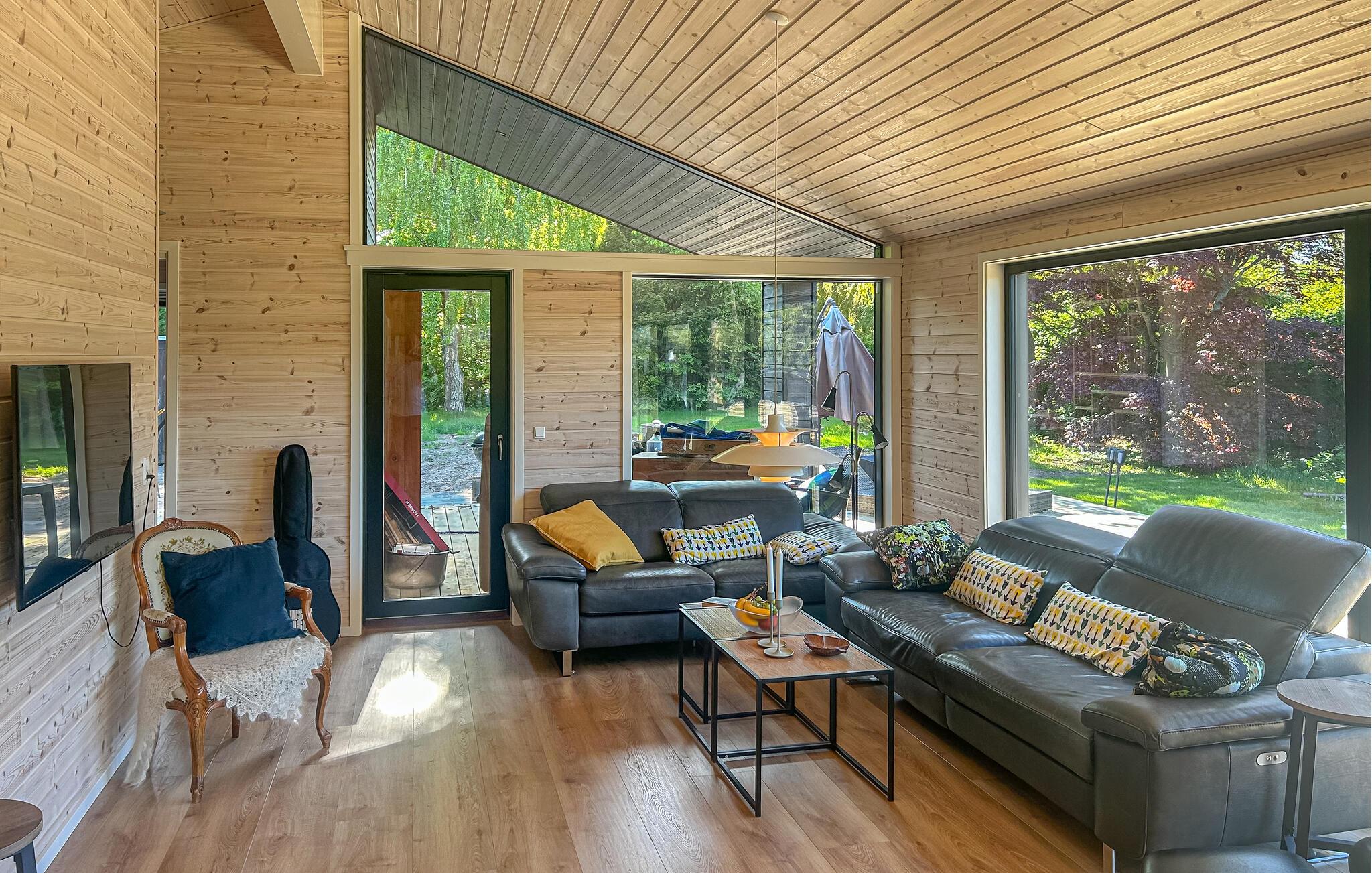Genießen Sie einen erholsamen Urlaub in diesem gemütlichen Holzhaus mit privatem Garten und ruhiger Lage. Das liebevoll eingerichtete Ferienhaus bietet Ihnen ein warmes, einladendes Ambiente und viel Platz für gemeinsame Momente. Die großen Fenster durchfluten den Innenraum mit Licht und sorgen für eine freundliche Atmosphäre. Der offene Wohnbereich lädt zu gemeinsamen Mahlzeiten, entspannten Lesestunden oder geselligen Spieleabenden ein. Beginnen Sie den Tag mit einer heißen Tasse Kaffee in der Sofaecke, während Sie den Blick über den Garten schweifen lassen. Genießen Sie abends die wohltuende Wärme der hauseigenen Sauna.